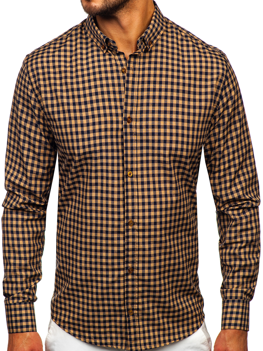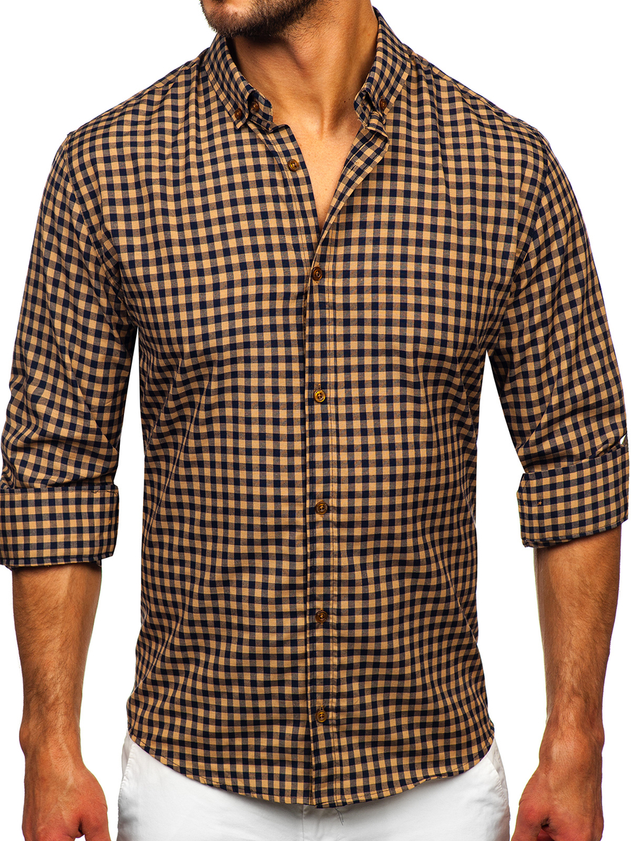 Opiniile utilizatorilor despre Cămașă în carouri vichy cu mâneca lungă maro Bolf 22747