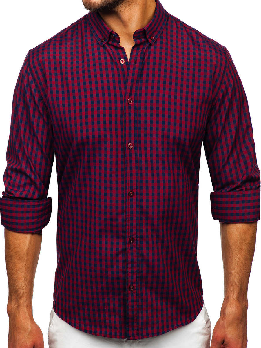 Opiniile utilizatorilor despre Cămașă în carouri vichy cu mâneca lungă bordo Bolf 22747