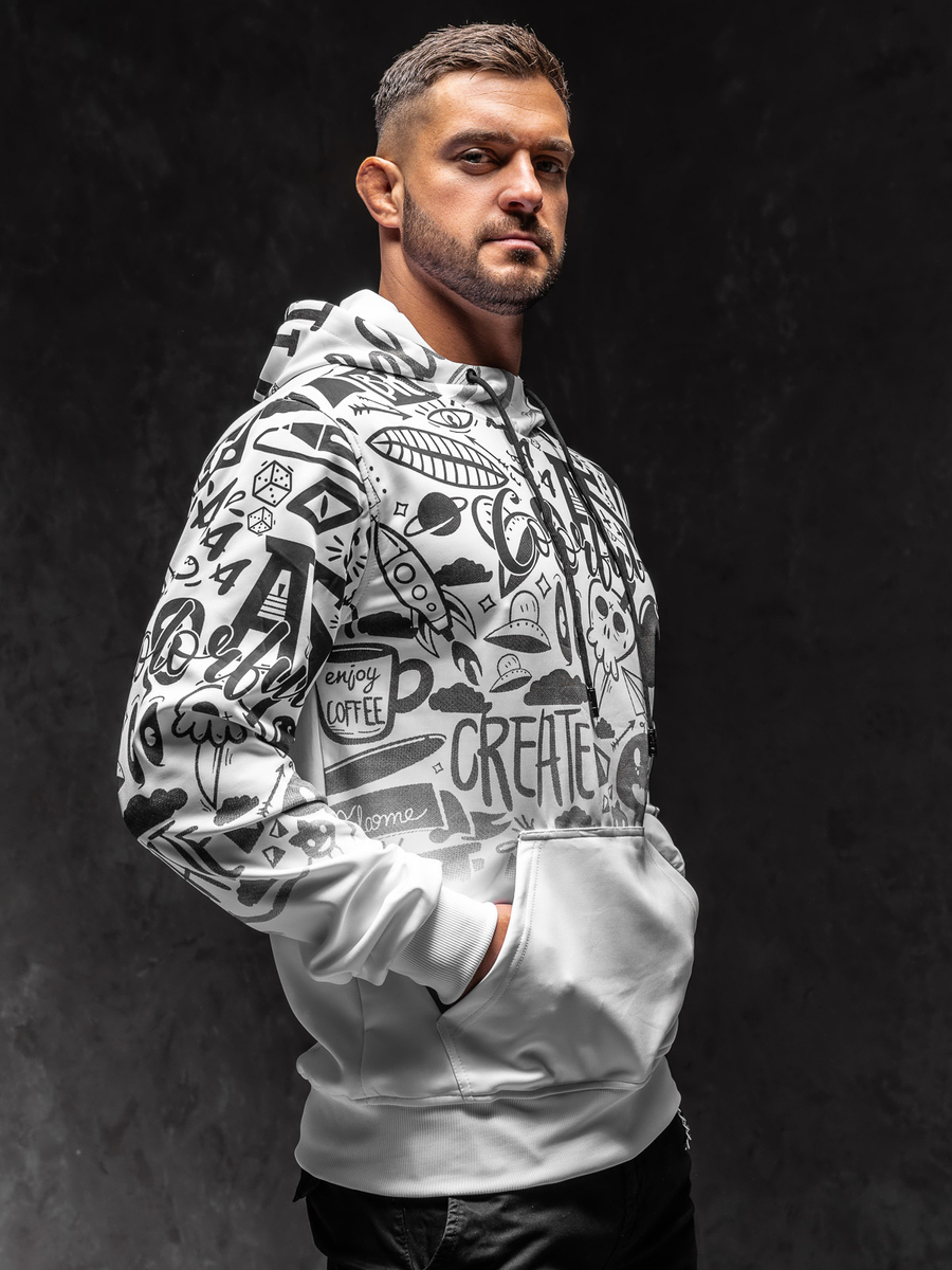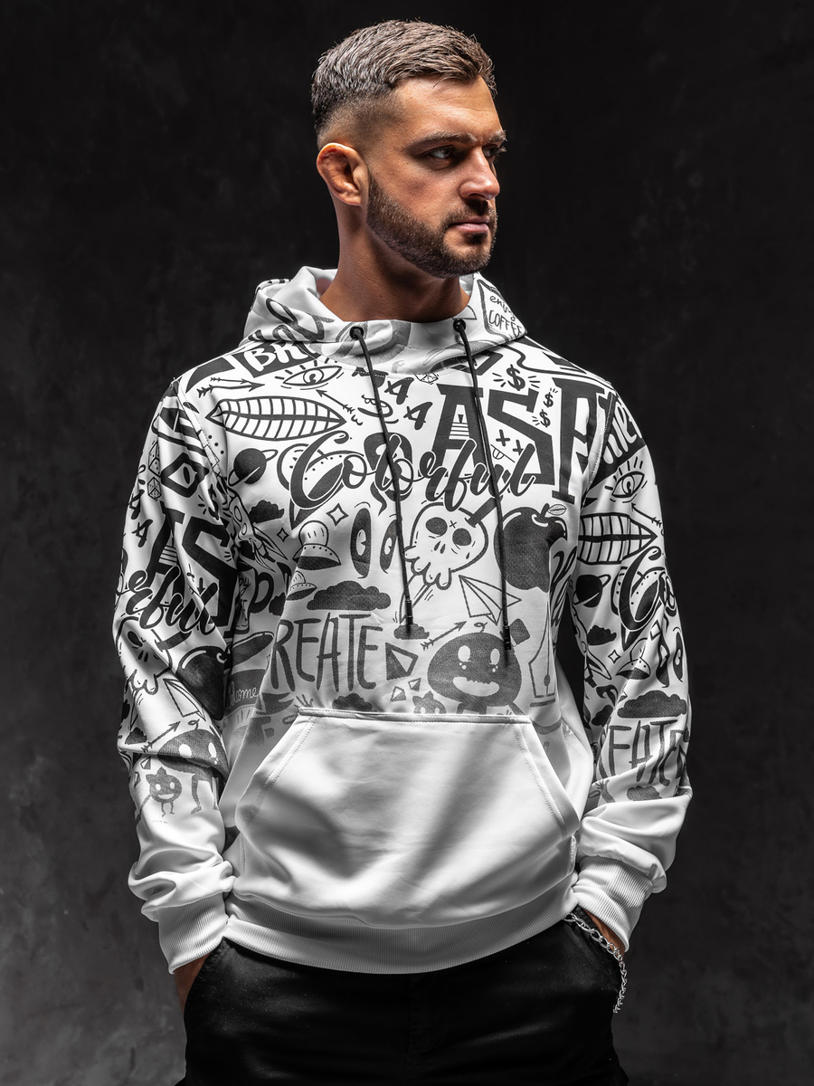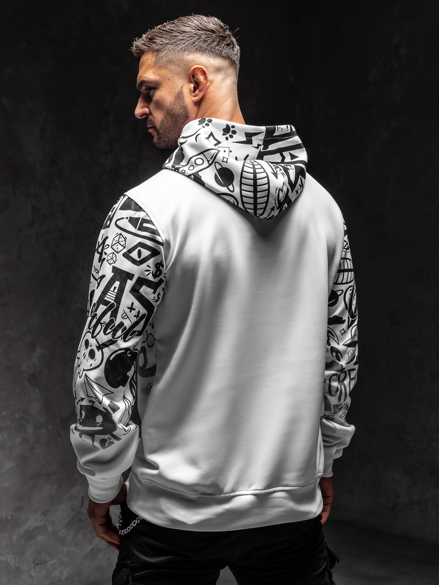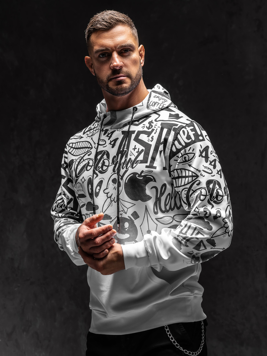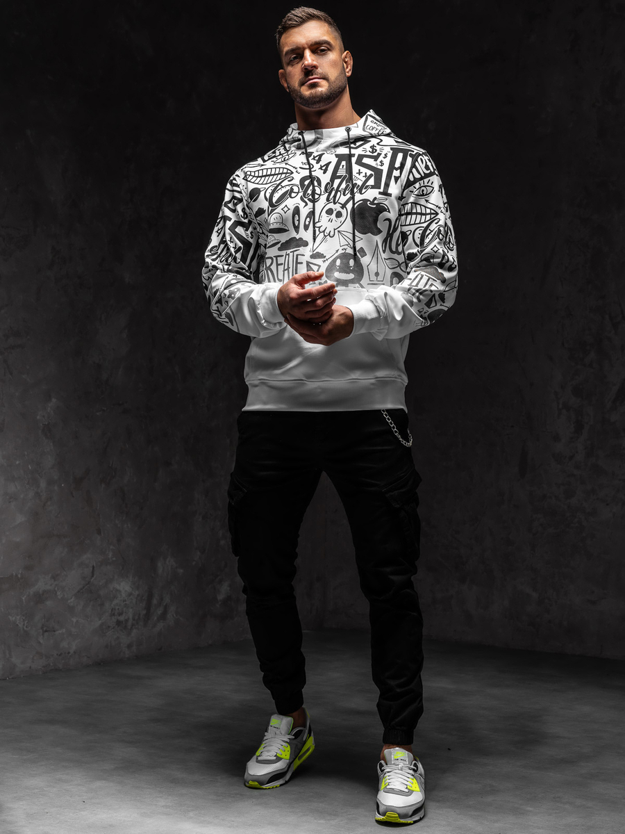 Dacă preferi ținutele unicale, atunci bluza Bolf 8B995 trebuie să fie în garderoba ta! Anume prin culoarea negru-alb bluza arată clasic, însă modelul expresiv asigură că te vei evidenția din mulțime. Bluza se îmbracă peste cap și are glugă reglabilă ce va proteja de ploaie și frig în zilele reci. Este călduroasă și nu reține mișcările. Materialul din care a fost confecționat este plăcut la atingere. Suplimentar bluza are buzunar mare tip cangur Va arăta minunat în combinare cu pantaloni de trening si vestă.