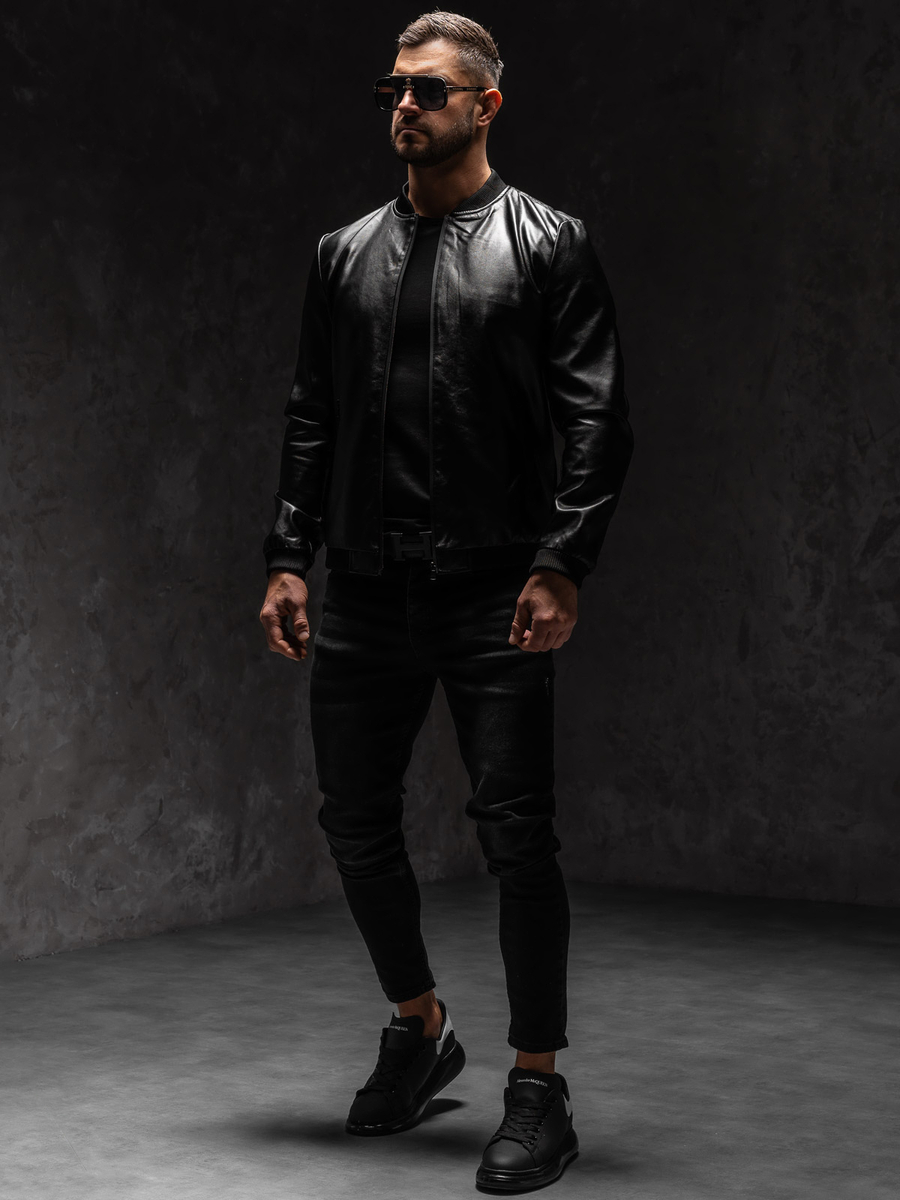 Geaca bomber pentru bărbați din piele neagră Bolf 6803A1 este o opțiune excelentă pentru bărbații care doresc să-și exprime stilul individual. Fabricat din materiale de înaltă calitate, făcându-l foarte durabil și sigur că va dura mai multe sezoane. Croiala clasica evidentiaza perfect silueta si confera eleganta si șarm. Este un element atemporal al garderobei bărbaților care se potrivește atât stilurilor casual, cât și mai formale. Można ją nosić zarówno na co dzień do jeansów, jak i na specjalne okazje w połączeniu z koszulą i chinosami.