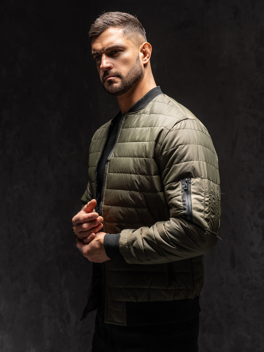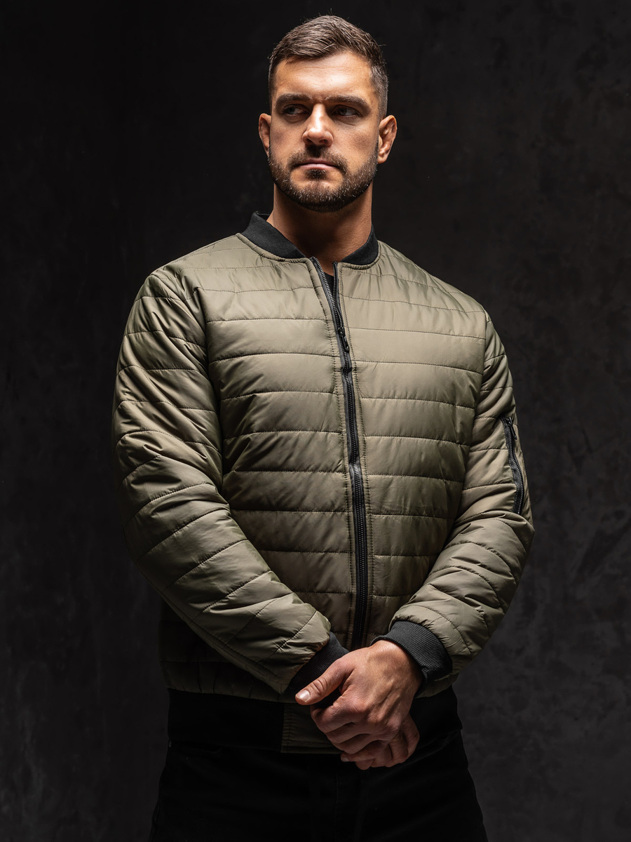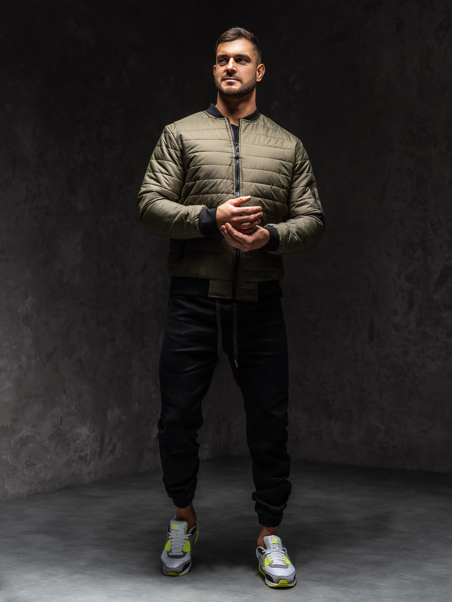 Geaca kaki bărbati Bolf MY-02A1 este matlasată în dungi. Închiderea cu fermoar. Geaca tip bomber jacket se va potrivi în ținutele sport și zilnice, poartă de asemenea și în ținutele urbane. Are guler practic tip tunică. Două buzunare exterioare cu închidere la fermoar și un buzunar suplimentar la mâneca stângă cu fermoar. Mânecile și finisarea cu guler, elastice culoare neagră. Geaca este stilată și practică poate fi de asemenea purtată in mai multe sezoane. Geaca bomber se înscrie excelent în trendurile modei actuale, confecționată din material moale și ușor. Geaca stil sport se va potrivi în zilele reci, primăvara devreme și toamna. Disponibilă în diverse culori ce asigură că o poți combina cu alte articole din garderoba.