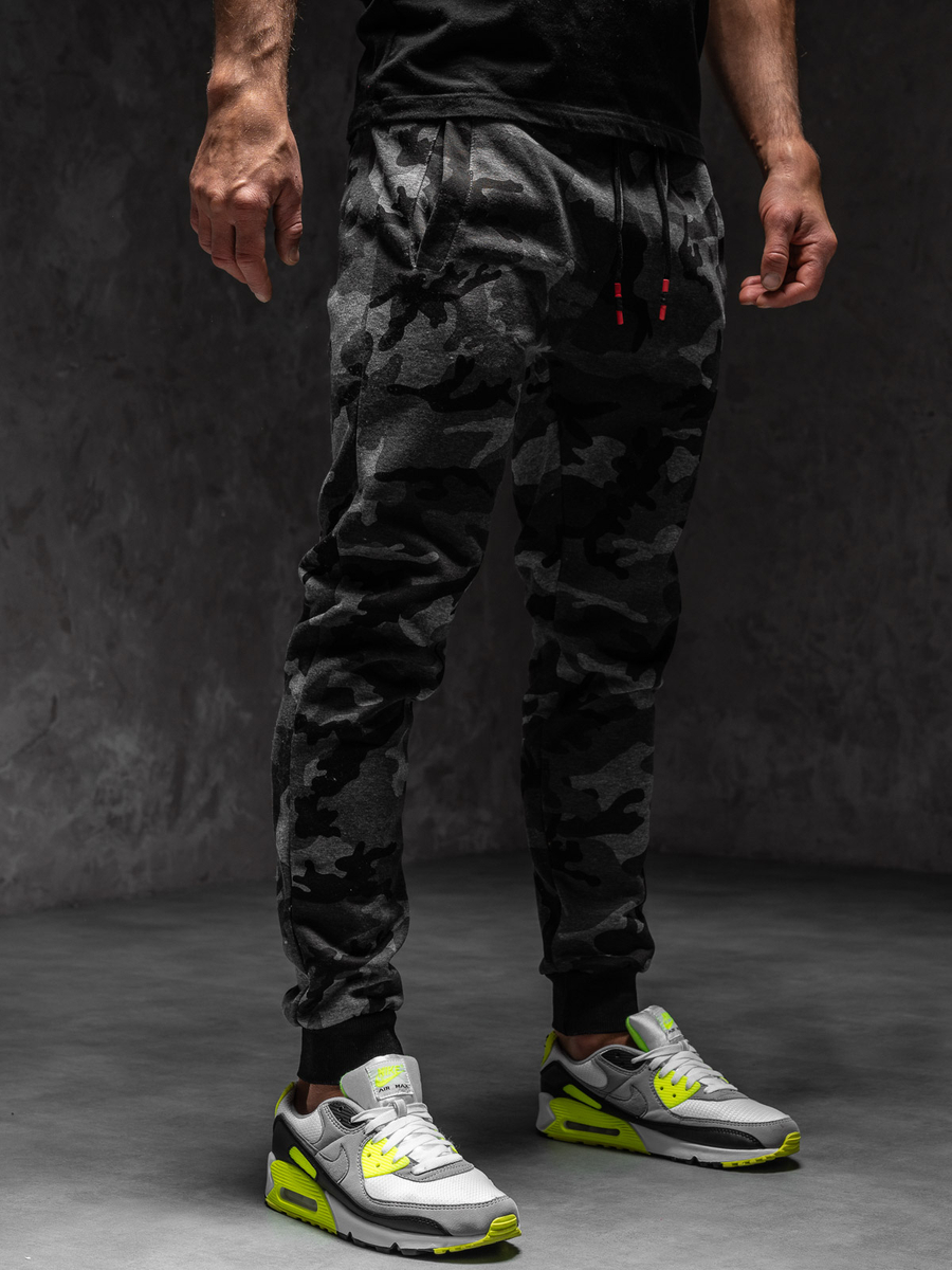 Pantaloni sport Bolf grafit imprimați în camuflaj. Au 2 buzunare, elastic în talie reglabili cu șnur. Combină pantalonii training grafit în ținutele street și sport cu bluză oversize. Ideal zilnic.