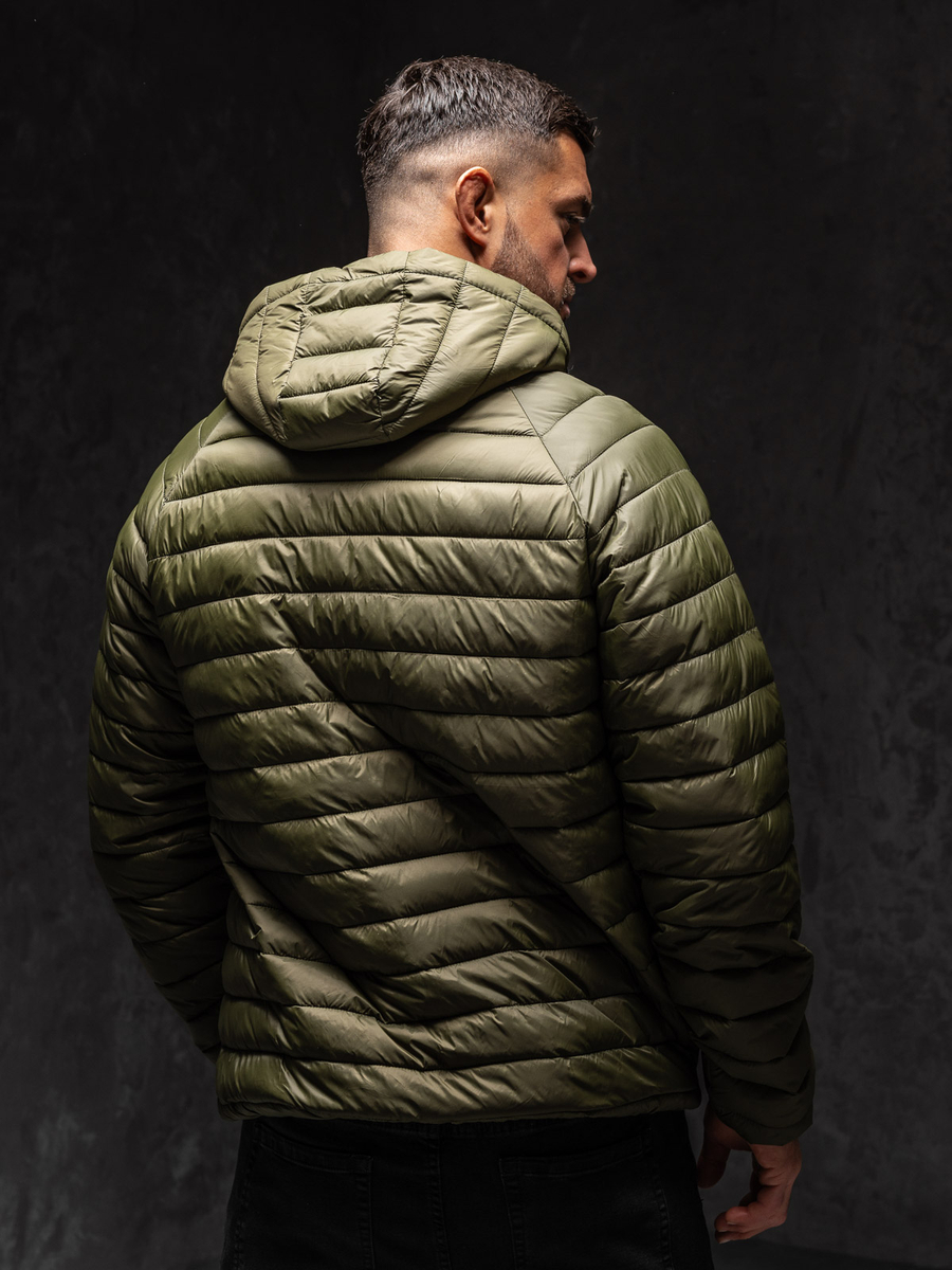 Geaca verde matlasată Bolf 13021A1 se va potrivi excelent în ținutele sport. Geacă comodă și practică must have în garderoba fiecărui bărbat. Poți purta la training sau plimbare. Se închide cu fermoar. Are glugă reglabilă nu este detasabila, care protejează de ploaie și frig. Două buzunare cu inchidere la fermoar practic. Terminația și mânecile cu dungă elastică. Geaca este confecționată din 100% nylon de aia este elastică. Va arăta excelent în combinare cu blugi sau joggers.