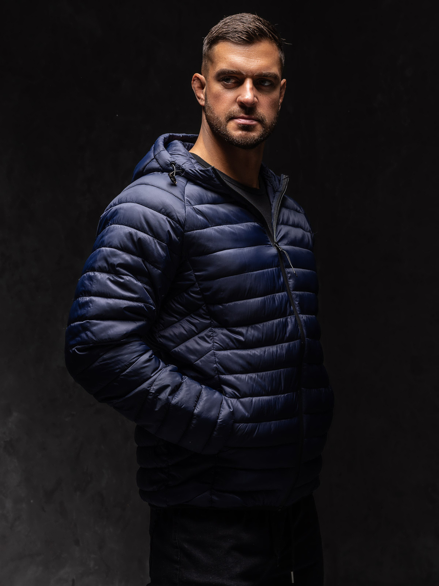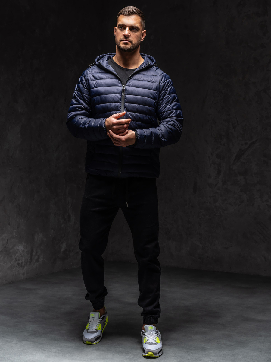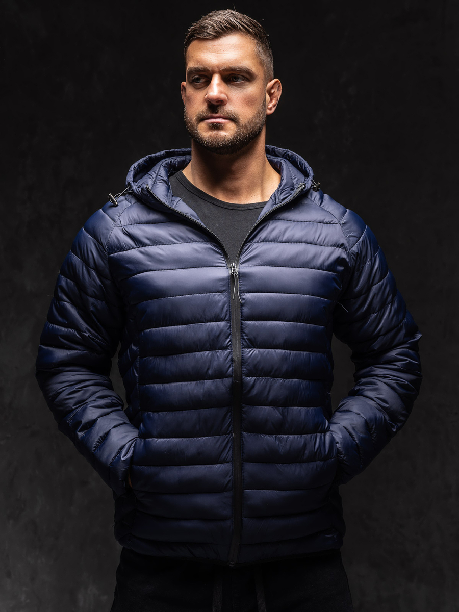 Geacă bleumarin matlasată Bolf 13021A1 se va potrivi excelent în ținutele sport. Geacă comodă și practică must have în garderoba fiecărui bărbat. Poți purta la training sau plimbare. Se închide cu fermoar. Are glugă reglabilă nu este detasabila, care protejează de ploaie și frig. Două buzunare cu inchidere la fermoar practic. Terminația și mânecile cu dungă elastică. Geaca este confecționată din 100% nylon de aia este elastică. Va arăta excelent în combinare cu blugi sau joggers.