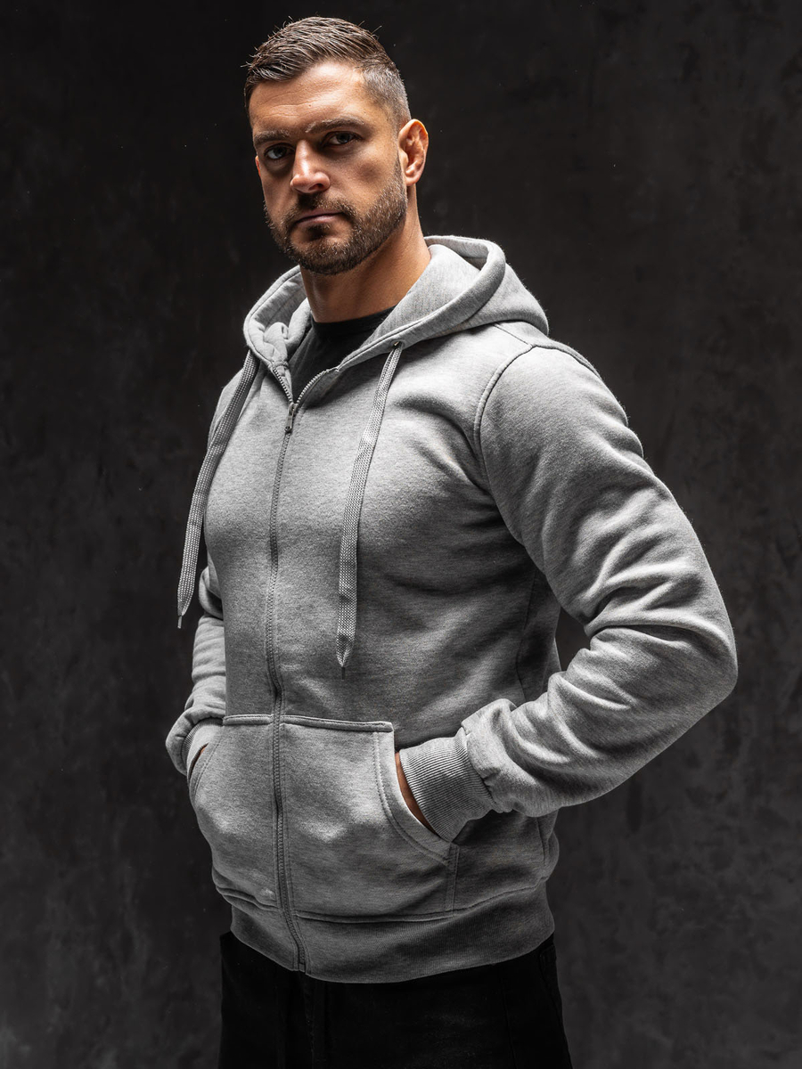 Hanorac Bolf 2008A1 gri cu închidere la fermoar. Croiala clasica confectionata din material moale la atingere. Produsul se caracterizează prin diversitatea culorilor expresive. Are glugă reglabilă și buzunare pe laterala. Terminatia hanoracului și mânecile cu elastice.