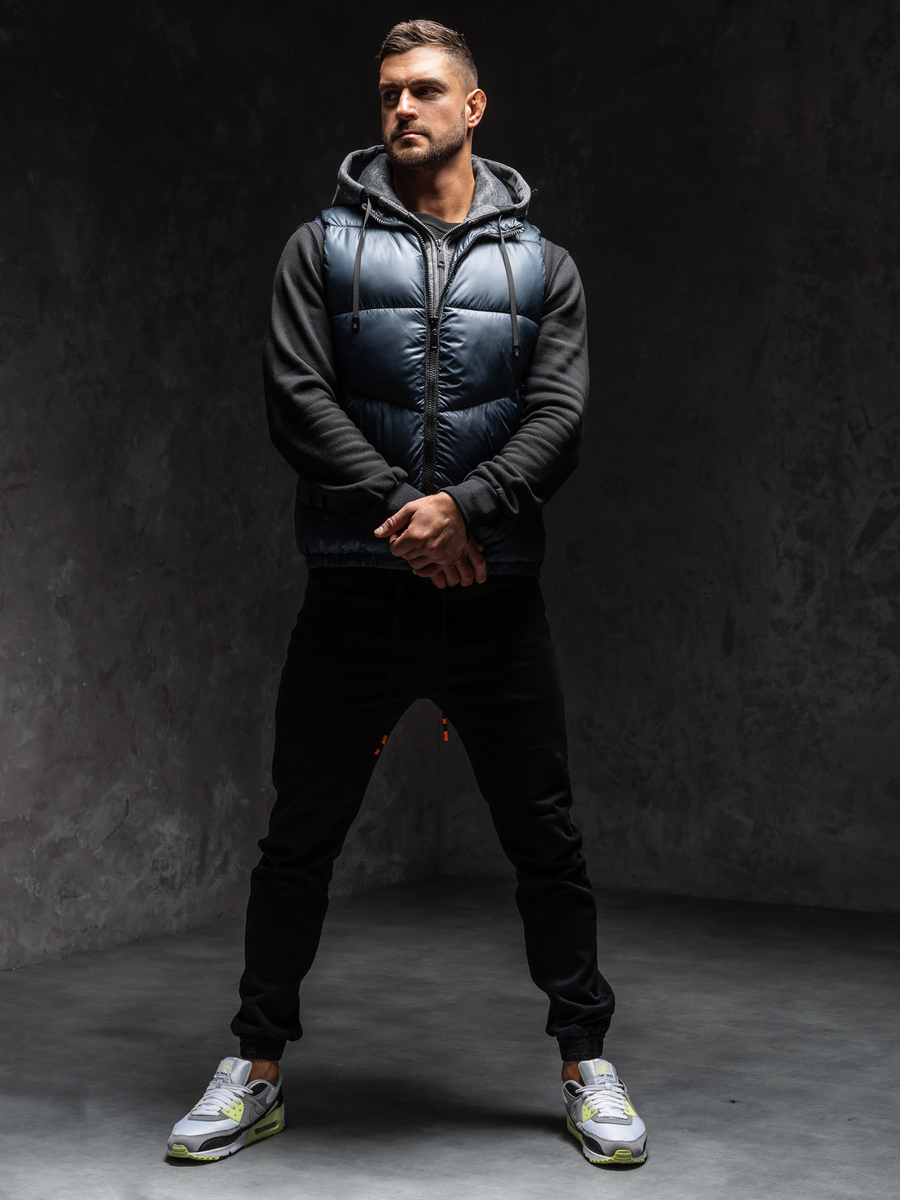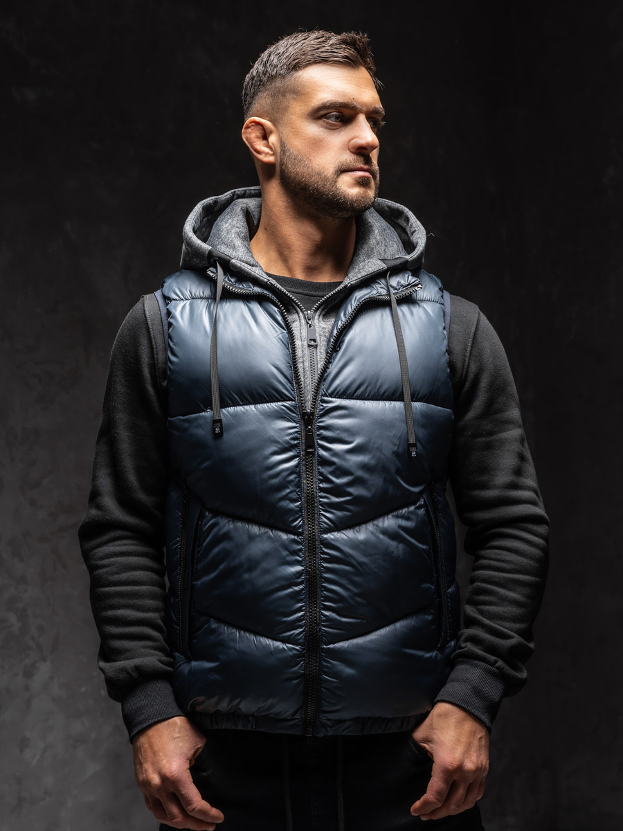 Vesta pentru bărbați bleumarin cu glugă, Bolf 2908A1, va fi perfectă pentru a crea orice stil, atât sport, cât și urban.. Această vestă clasică va fi o alternativă excelentă pentru gecile in sezonul de toamnă, protejând de frig și vânt. Acest model are glugă detașabilă, datorită acestui lucru o poți combina în diverse ținute. Se închide cu fermoar. Finisarea cu elastic, la mâneci cu dungă elastică-datorită acestui lucru vei fi protejat de frig în zilele reci! Două buzunare exterioare cu inchidere la fermoar strălucitor conferă caracter practic. Confectionată din 100% z nilon. Vestea poate fi combinată in diverse ținute. Va arăta excelent în combinare cu pantaloni de training creează un stil sport perfect. Poți combina cu: bluză, hanorac, sau Tricou!