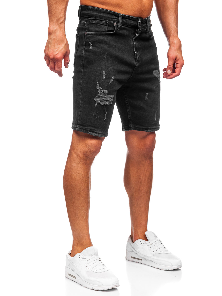 Opiniile utilizatorilor despre Pantaloni scurți negri din denim pentru bărbați Bolf 0627