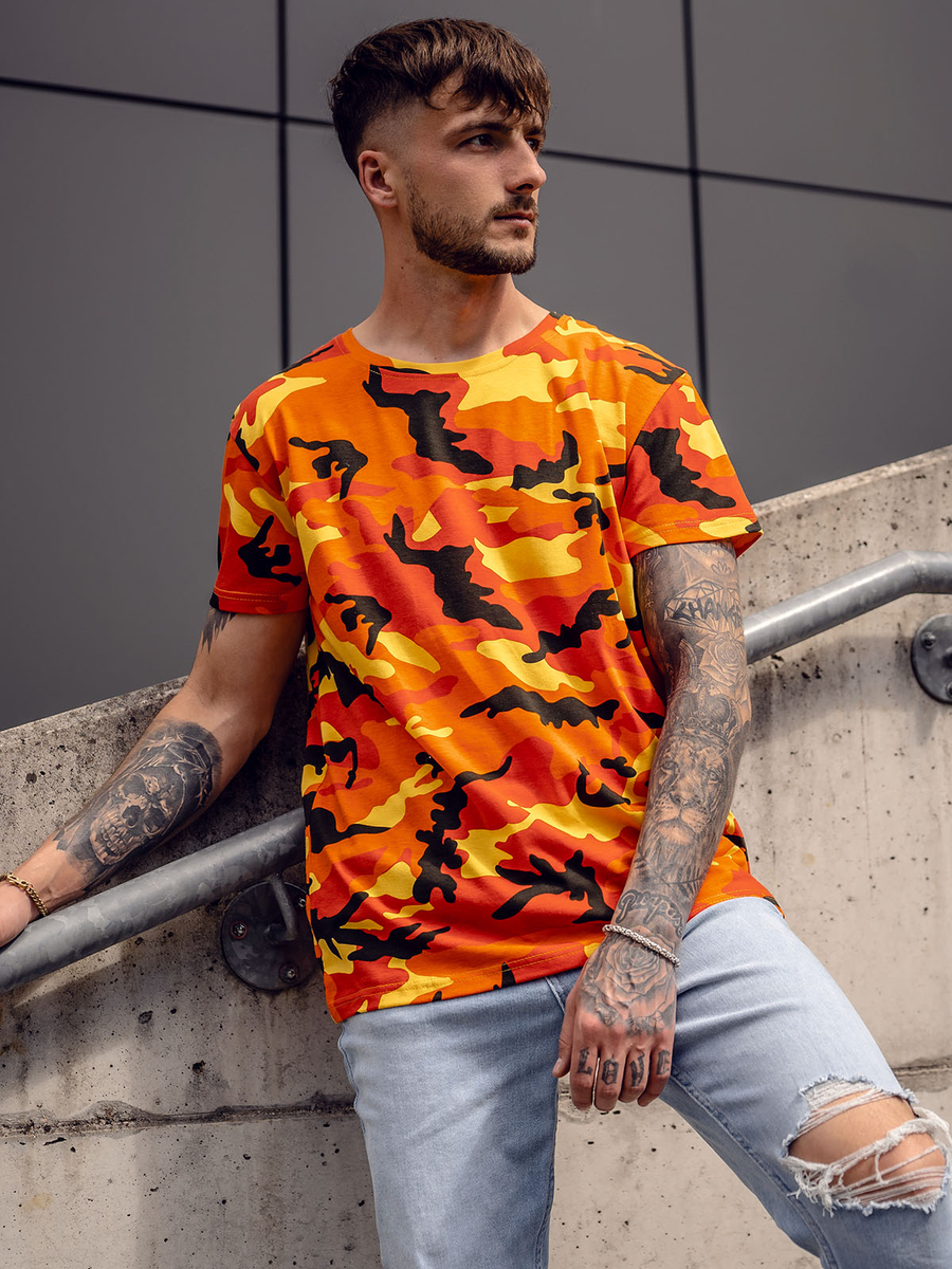 Tricoul camo portocaliu pentru bărbați Bolf S807A1 are un model camo la modă și atemporal. Culoarea atrăgătoare va fi un plus perfect pentru garderoba ta. Tricoul are un gat rotund, astfel incat produsul poate fi pus usor si liber peste cap. Partea de jos a tricoului este rotunjită, ceea ce îl face să se potrivească perfect oricărei siluete. Tricoul este flexibil si se va potrivi perfect pe corp. Este realizat din material respirabil.