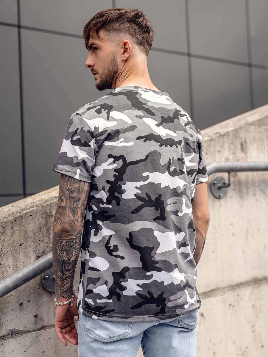 Tricoul camo gri pentru bărbați Bolf S807A1 are un model camo la modă și atemporal. Culoarea atrăgătoare va fi un plus perfect pentru garderoba ta. Tricoul are un gat rotund, astfel incat produsul poate fi pus usor si liber peste cap. Partea de jos a tricoului este rotunjită, ceea ce îl face să se potrivească perfect oricărei siluete. Tricoul este flexibil si se va potrivi perfect pe corp. Este realizat din material respirabil.
