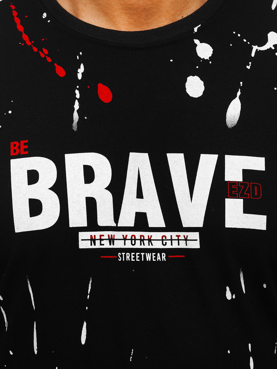 Opiniile utilizatorilor despre Tricou bărbătesc din bumbac negru și roșu cu imprimeu Bolf 14727