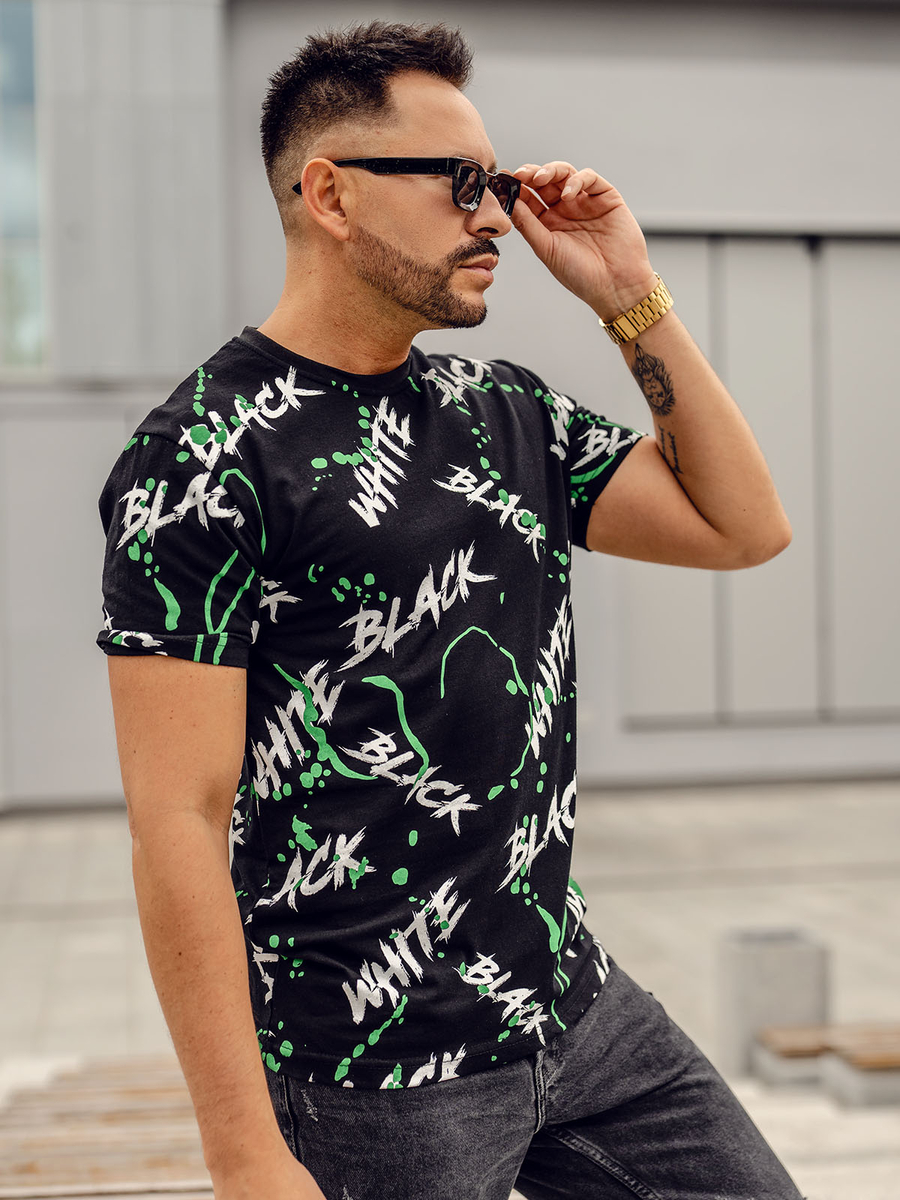 Tricoul pentru bărbați negru și verde cu imprimeu Bolf 14939 este disponibil în trei versiuni de culoare. Datorită imprimeului de designer, tricoul devine un produs must-have care adaugă un caracter unic oricărui stil. Produsul are un decolteu universal, rotund.Materialul de cea mai înaltă calitate, 100% bumbac, te face să te simți extrem de confortabil în toate circumstanțele. Se va potrivi excelent în ținutele zilnice și pentru training. Tricoul va arăta grozav cu orice tip de pantaloni, fie că este vorba despre un trireng sau blugi. Va arăta grozav într-o ținută sport, combinată cu o bluză sau vestă.