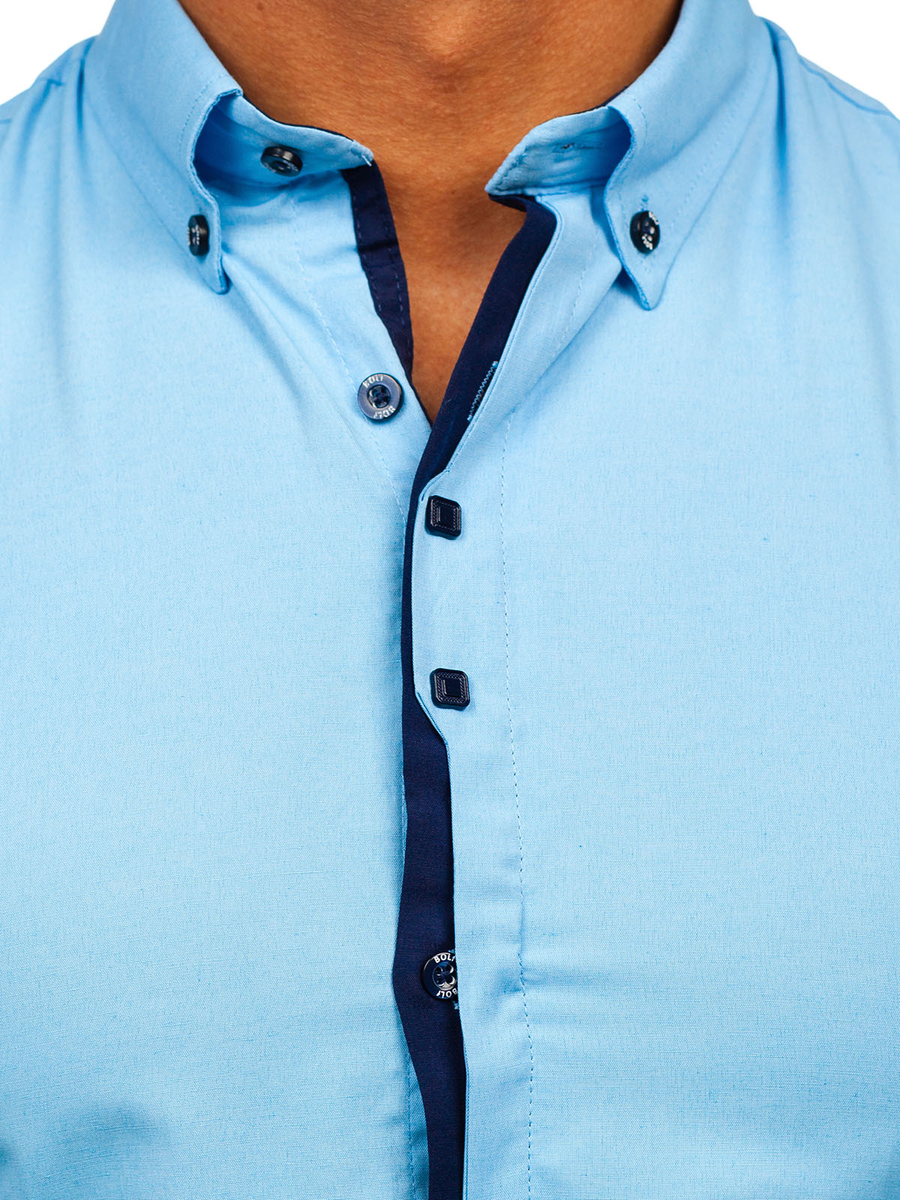 Opiniile utilizatorilor despre Cămașă albastră elegantă pentru bărbați cu mâneci lungi Bolf 24701
