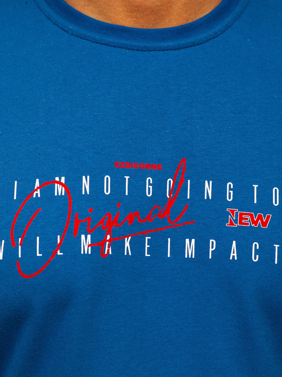 Opiniile utilizatorilor despre Tricou pentru bărbați din bumbac albastru cu imprimeu Bolf 5032