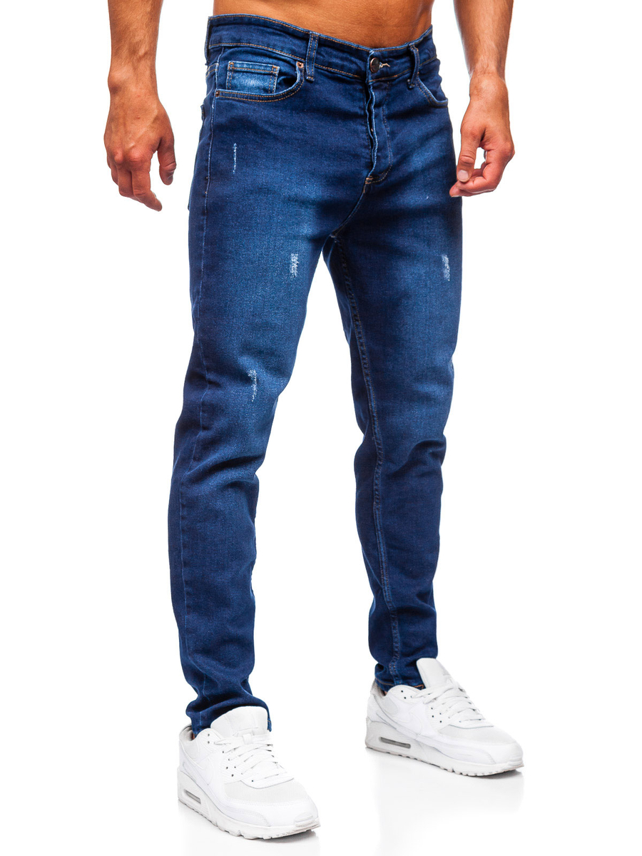 Pantalonii blumarin pentru bărbați slim fit Bolf 6516 sunt blugi tipici cu o croială care îmbrățișează silueta. Sunt o nuanță destul de bleumarin închisă de denim. Există abraziuni minore și umbrire subtilă pe picioare. Blugii sunt confectionati din 98% bumbac si 2% Lycra, ceea ce inseamna ca sunt flexibili. Se inchid cu nasturi, au doua buzunare pe laterale si doua la spate. Poartă-le cu tricouri de bază sau hanorace pentru a crea ținute lejere, casual și de zi cu zi. Le poți purta și cu un polo sau cămașă cu guler și să creezi un stil casual inteligent, perfect pentru lucrul la birou sau pentru întâlniri semi-formale. Nu uita să completezi look-ul cu o curea din piele la modă și pantofi în aceeași culoare cu cureaua.