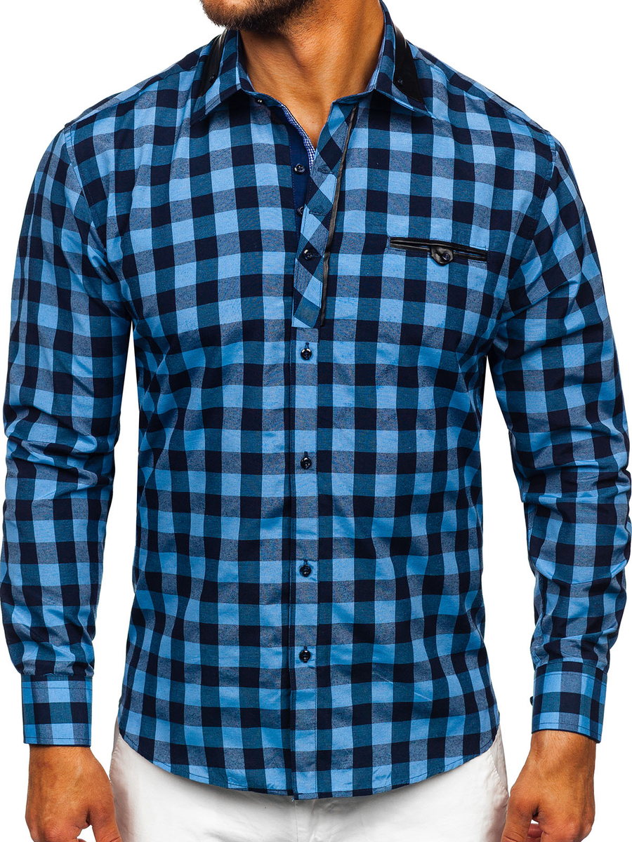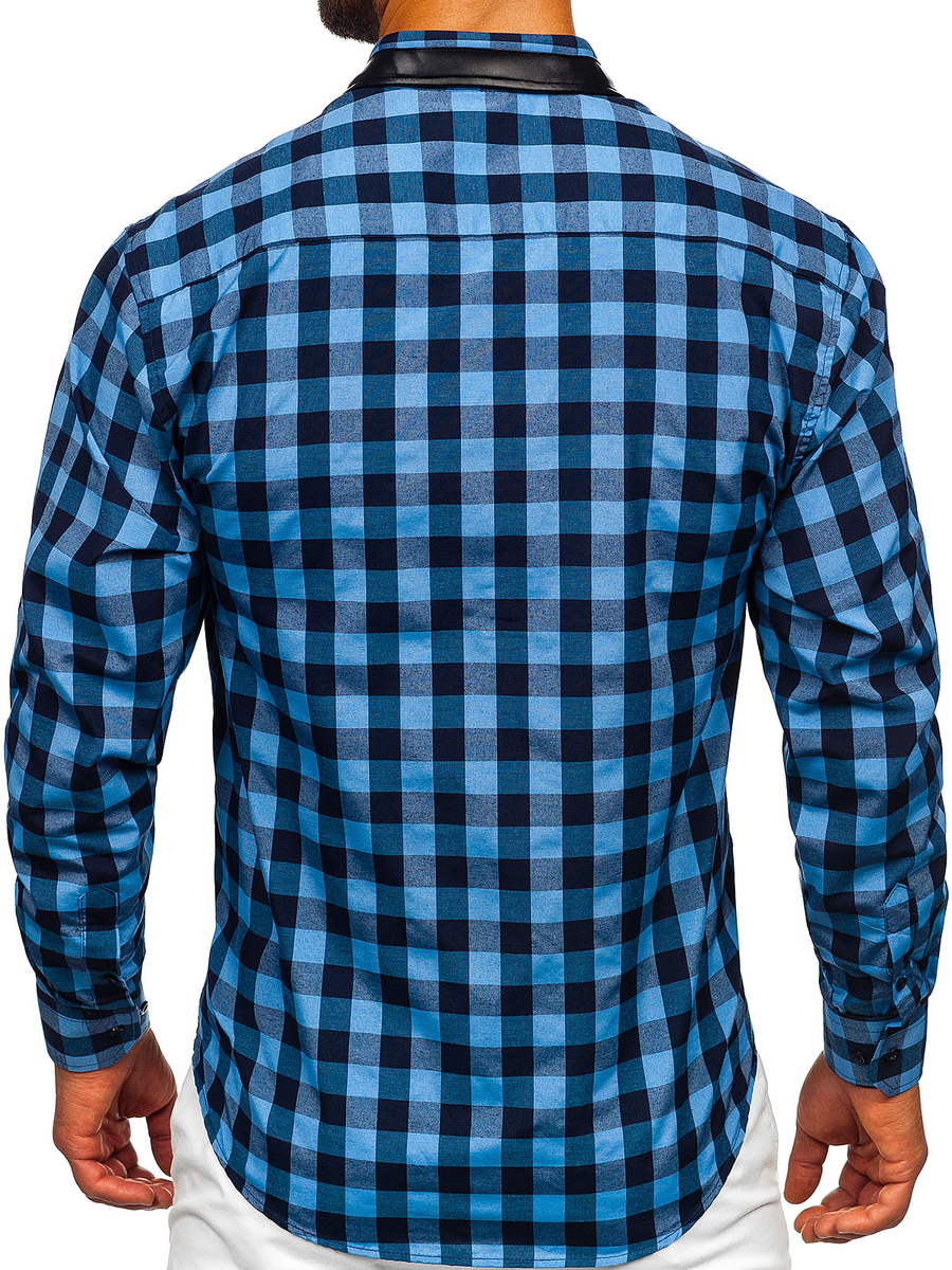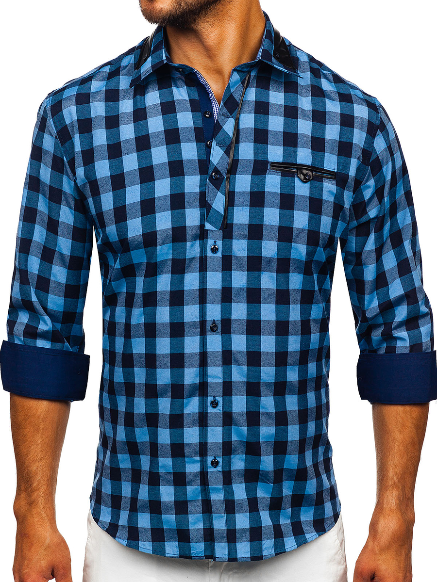 Opiniile utilizatorilor despre Cămașă cu mâneci lungi în carouri de culoare bleumarin pentru bărbați Bolf 19605