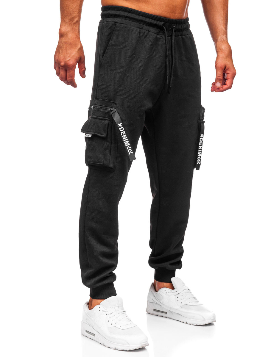 Opiniile utilizatorilor despre Pantaloni cargo negri Pantaloni de jogging pentru bărbați de la Bolf K18