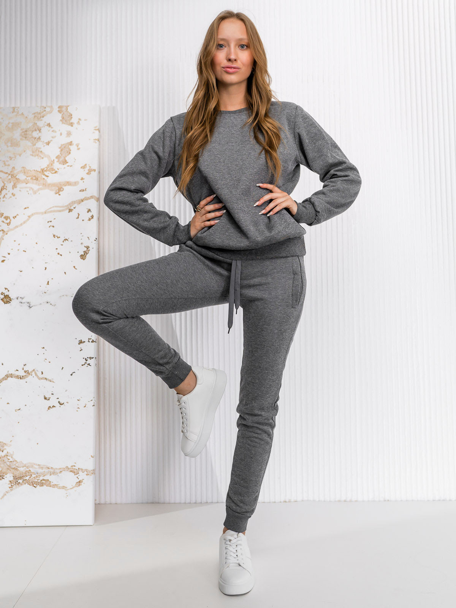 Setul de trening pentru femei din grafit de la Bolf 0001A1 este format dintr-un hanorac și pantaloni de trening. Este disponibil în mai multe versiuni de culoare, ceea ce vă permite să alegeți culoarea care să se potrivească stilului dvs. visat. Partea de jos și mânecile hanoracului sunt finisate cu o manșetă, care subliniază estetic designul produsului. Datorită taliei reglabile cu șnur și șnur, pantalonii se potrivesc frumos siluetei. Au doua buzunare exterioare. Finisați la picioare cu elastic. Natura de bază a setului îi permite să fie utilizat în multe circumstanțe. Este perfect pentru excursii la munte și activități în aer liber. Setul este dedicat femeilor care apreciază libertatea de mișcare. Materialul de foarte buna calitate, realizat din 65% bumbac si 35% poliester, iti va oferi confort si comoditate atunci cand il porti. Creați-vă aspectul sportiv combinând setul cu o jachetă sport. De asemenea, va funcționa excelent cu jacheta de blugi.