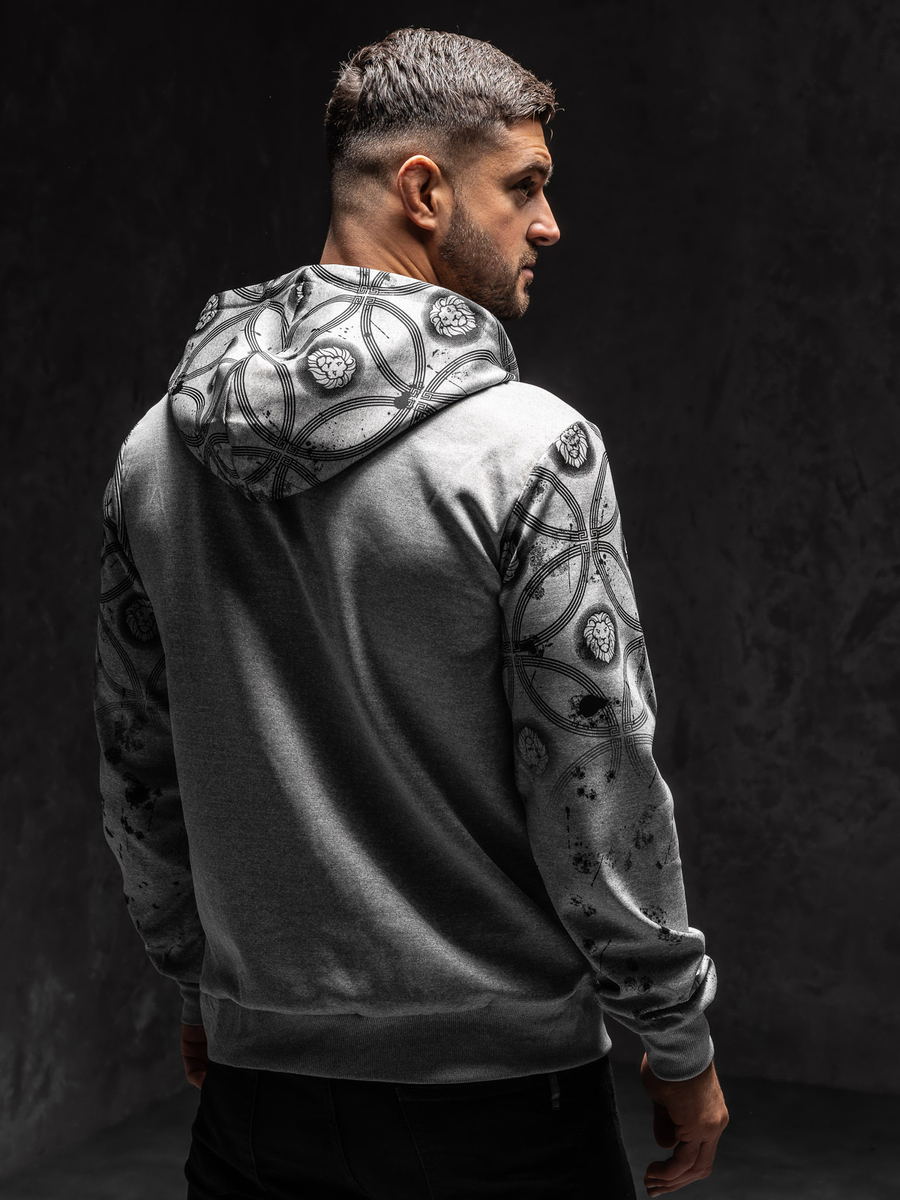Hanoracul gri pentru bărbați cu fermoar de la Bolf 27B8122A1 este un clasic atemporal în stilurile de zi cu zi. Un hanorac cu croiala clasica, cu gluga reglabila, perfect pentru fanii unui stil sportiv. Imprimeul de designer îi conferă un caracter unic, la modă. Finisarea și mânecile cu elastice ce protejează de vânt și în zilele reci. Hanoracul are două buzunare laterale fără închidere. Este confectionata dintr-un material foarte placut care va oferi confort chiar si in timpul celui mai solicitant antrenament.Cauți o ținută sport? Îmbinați hanoracul cu pantaloni de trening, tricou și vestă!