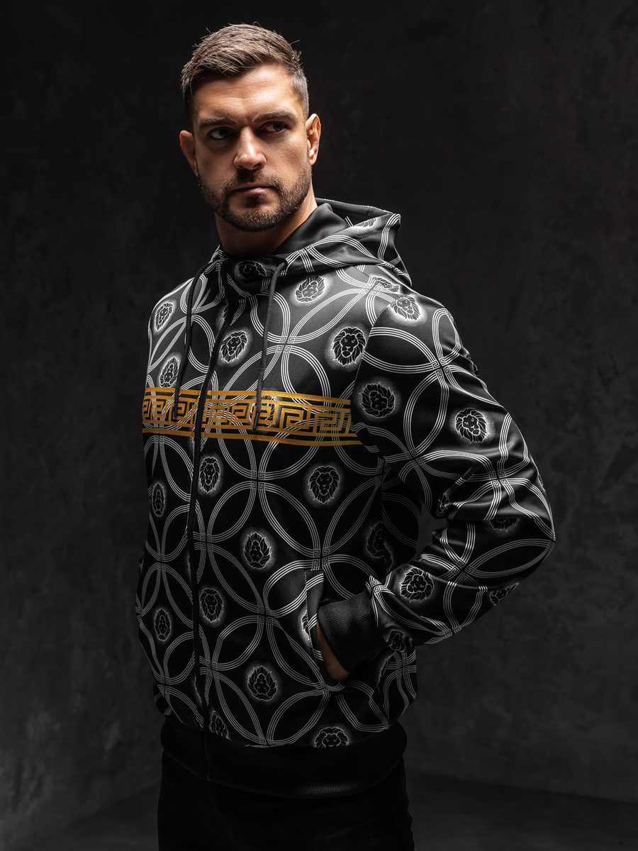 Hanoracul negru pentru bărbați cu fermoar și glugă de la Bolf 27B8123A1 este un clasic atemporal în stilurile de zi cu zi. Un hanorac cu croiala clasica, cu gluga reglabila, perfect pentru fanii unui stil sportiv. Imprimeul de designer îi conferă un caracter unic, la modă. Finisarea și mânecile cu elastice ce protejează de vânt și în zilele reci. Hanoracul are două buzunare laterale fără închidere. Este confectionata dintr-un material foarte placut care va oferi confort chiar si in timpul celui mai solicitant antrenament.Cauți o ținută sport? Îmbinați hanoracul cu pantaloni de trening, tricou și vestă!