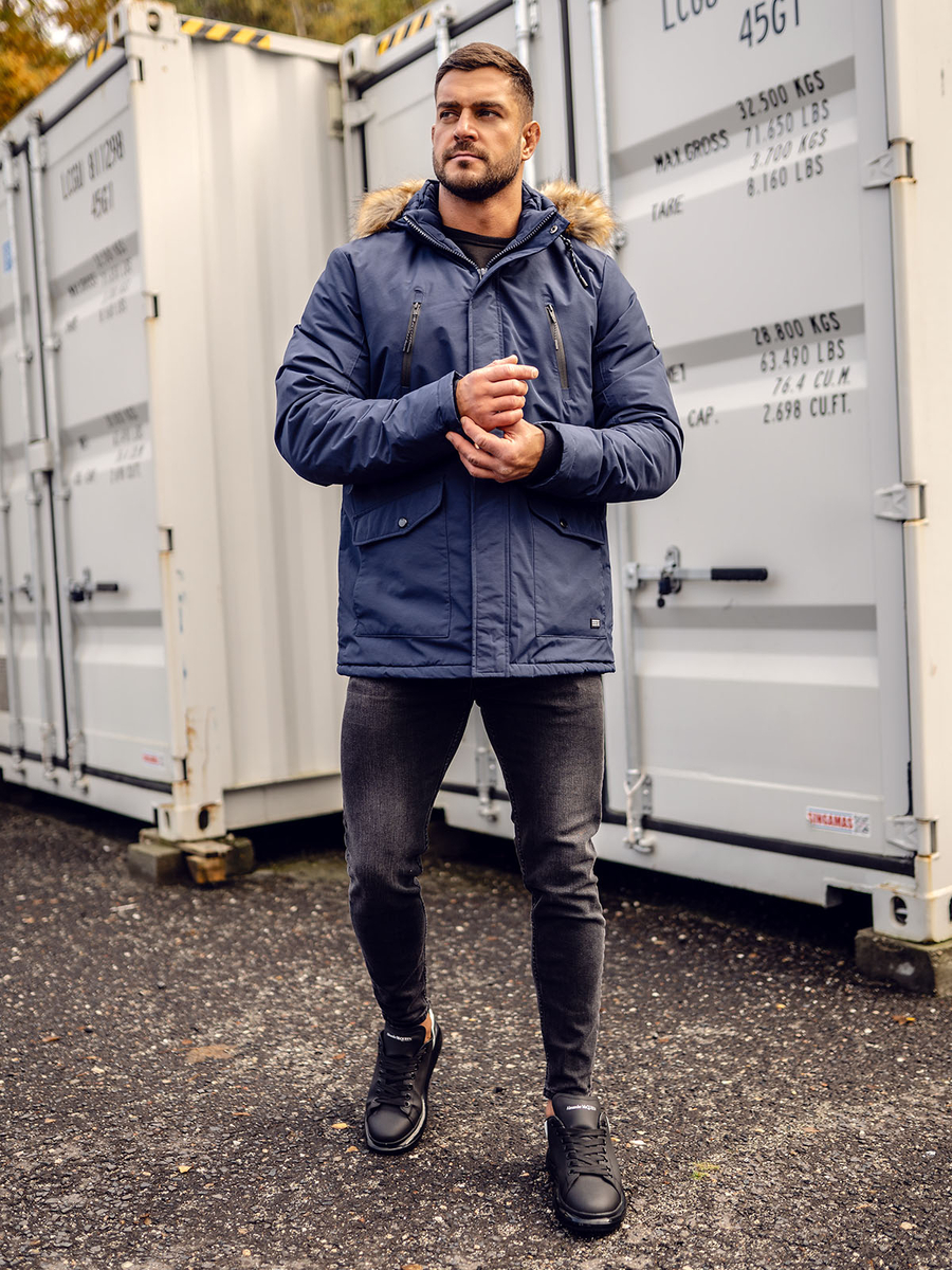 Jacheta parka Alaskan de iarnă pentru bărbați bleumarin de la Bolf WX032CA este perfectă pentru sezonul de iarnă.Se inchide clasic cu fermoar si cu capse. Are guler ridicat și glugă detașabilă, reglabilă, care te va proteja de vânt și ploaie. Un element unic, decorativ este blana detasabila de pe gluga si sigla de pe maneca. Este un model excelent fiecare persoană va fi mulțumită. Jacheta are buzunare practice la piept, prinse cu fermoar și buzunare exterioare acoperite cu clapă prinse cu un clic. In interioar un buzunar. Geaca este confecționată din materiale de calitate înaltă, datorită acestui lucru este plăcută la atingere. Confecționat din 100% poliester. Datorită universalității produsului se poate combina cu diverse ținute. Va crea o combinație perfectă cu blugi și mânecă lungă.