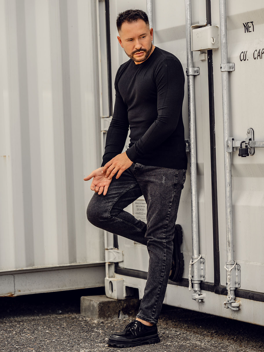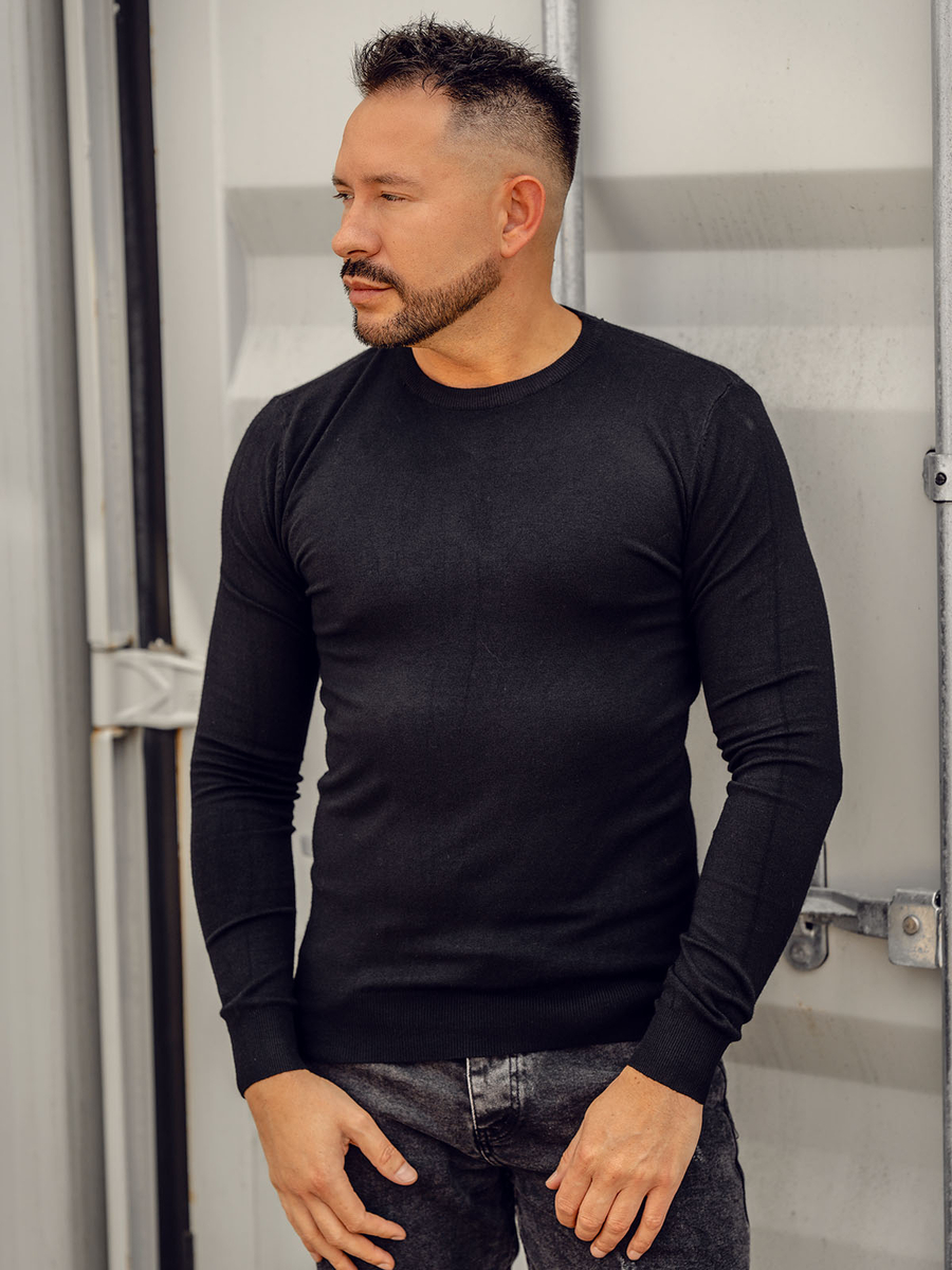 Puloverul negru pentru bărbați Bolf MMB602A este elementul perfect al stilului de toamnă sau iarnă. Vine în mai multe nuanțe de culoare unice. Partea de jos, decolteul și mânecile sunt finisate cu o coadă, datorită căreia se potrivește perfect siluetei.Puloverul este perfect pentru zilele mai reci. Îmbracă la serviciu sau plimbare. Stilul atemporal al produsului vă permite să creați multe stiluri la modă. Cu un pulover casual poți crea foi de contact pentru orice ocazie. Pune-ți tricoul, blugi, palton și bucură-te de un look super la modă!