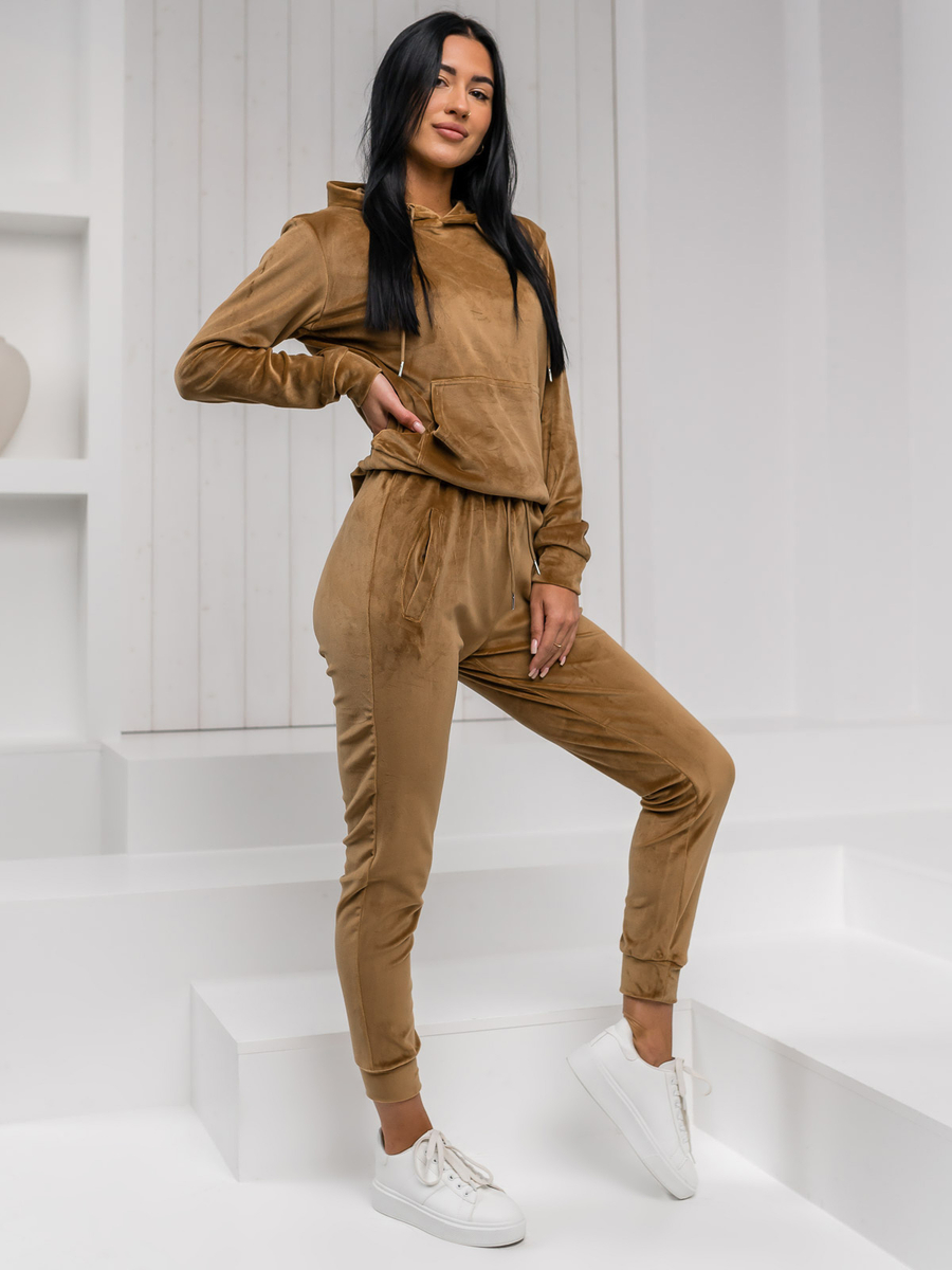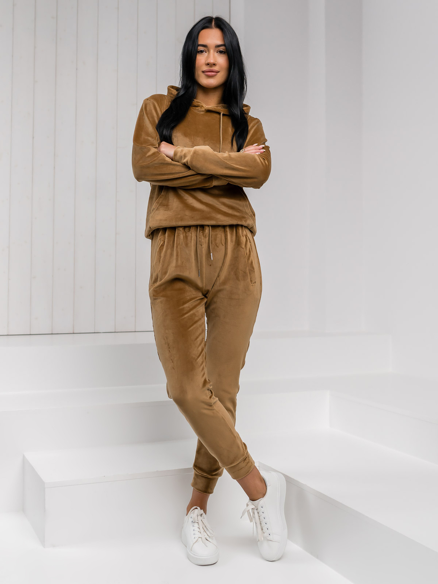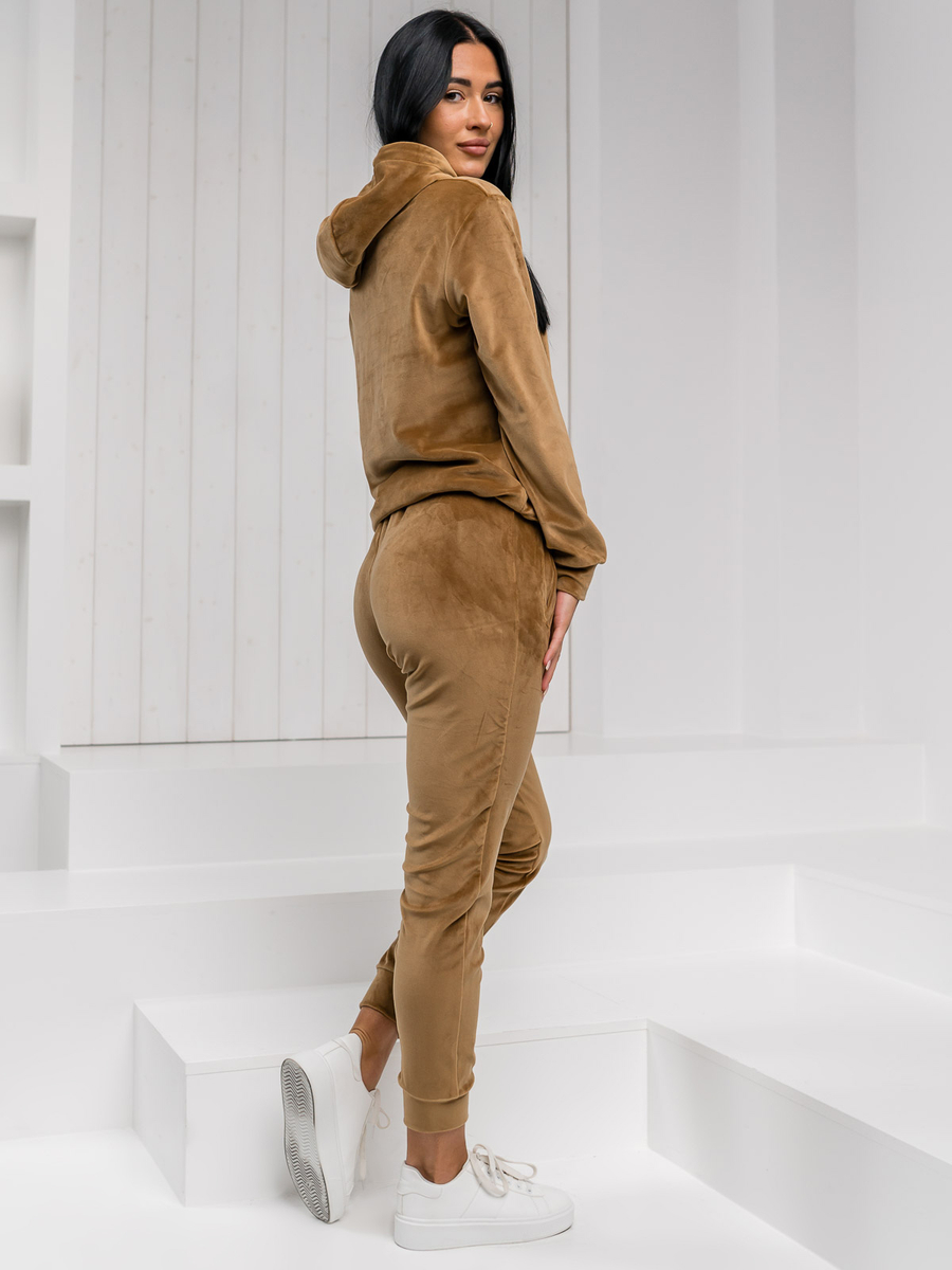 Opiniile utilizatorilor despre Set de trening de damă din catifea maro cu glugă din două piese Bolf 8C1175