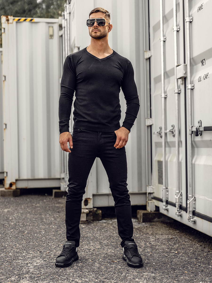 Puloverul negru pentru bărbați cu decolteu în V Bolf MMB601A este un pulover cu un caracter casual. Produsul are un decolteu clasic în V finisat cu șnur. Fundul și mânecile sunt, de asemenea, finisate cu o coadă. Datorită lor, puloverul se potrivește perfect oricărei siluete. Confecționat din material moale plăcut la atingere, se așează excelent pe siluetă. Poartă-l la serviciu, la școală, la cinema sau la o întâlnire cu prietenii - indiferent de ocazie, vei arăta mereu grozav. Puloverul clasic arată excelent cu blugi și geacă de piele, creează un outfit ideal in oraș. Poartă cu joggers și bluză, creează o ținută relaxată.