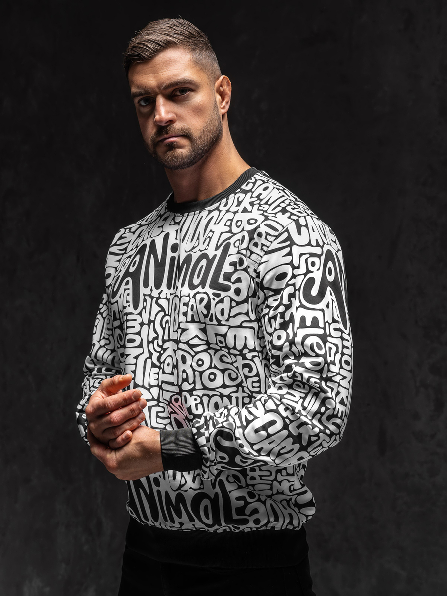 Opiniile utilizatorilor despre Hanorac fără glugă pentru bărbați alb-negru cu imprimeu Bolf 8B1131A1