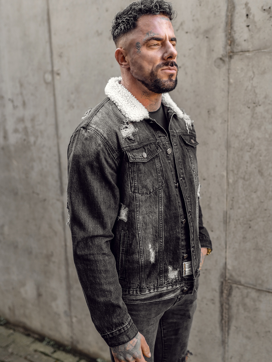 Opiniile utilizatorilor despre Jachetă trucker din denim pentru bărbați, neagră, Bolf MJ502NA
