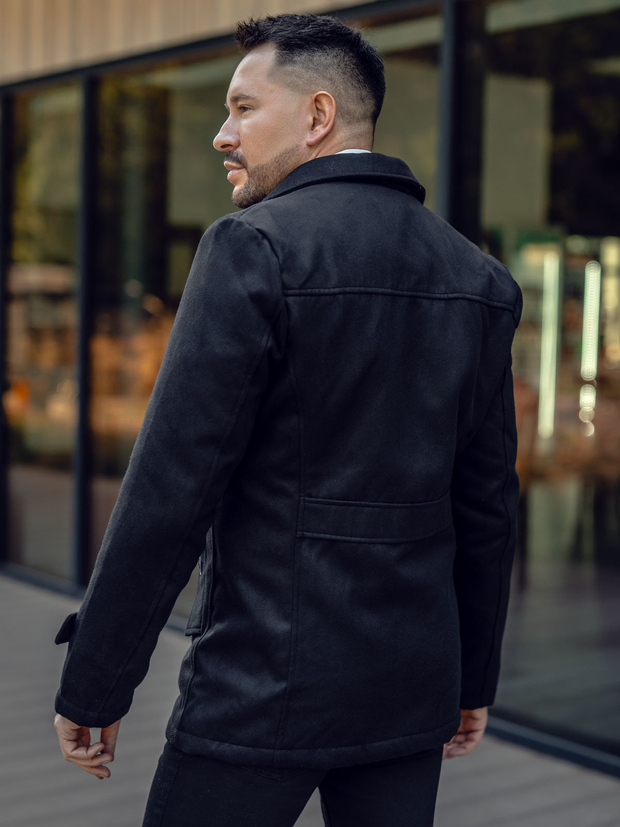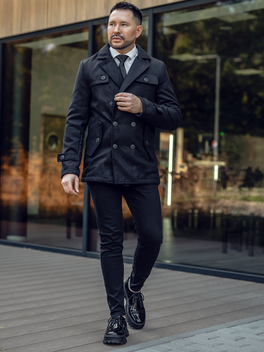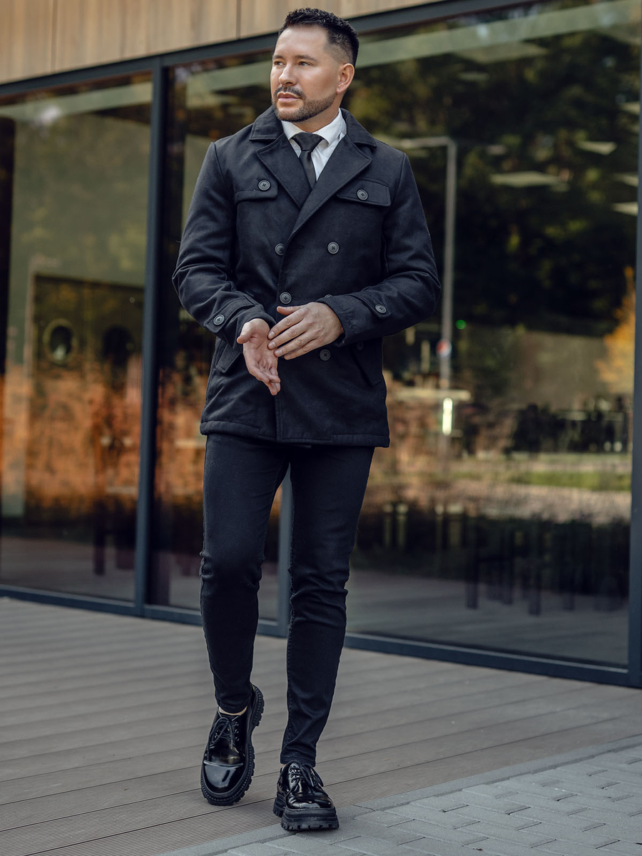 Paltonul negru de iarnă pentru bărbați la două piept Bolf M3142A se va potrivi perfect în garderoba unui bărbat elegant și la modă. Aceasta este o haină clasică, la două piept, prinsă cu nasturi. Are guler inversat, trei buzunare externe cu nasture și un buzunar interior. Paltonul a fost confecționat din material de calitate inaltă. Este original și foarte elegant. Are epoleți pe mâneci și căptușeală izolată. Arata grozav atat nasturi cat si descheiat. Se va combina excelent cu pantaloni chinos, cămașă si sau,ca ținută mai formală. Combină cublugi si maletă, vei obține o ținută zilnică excelentă.