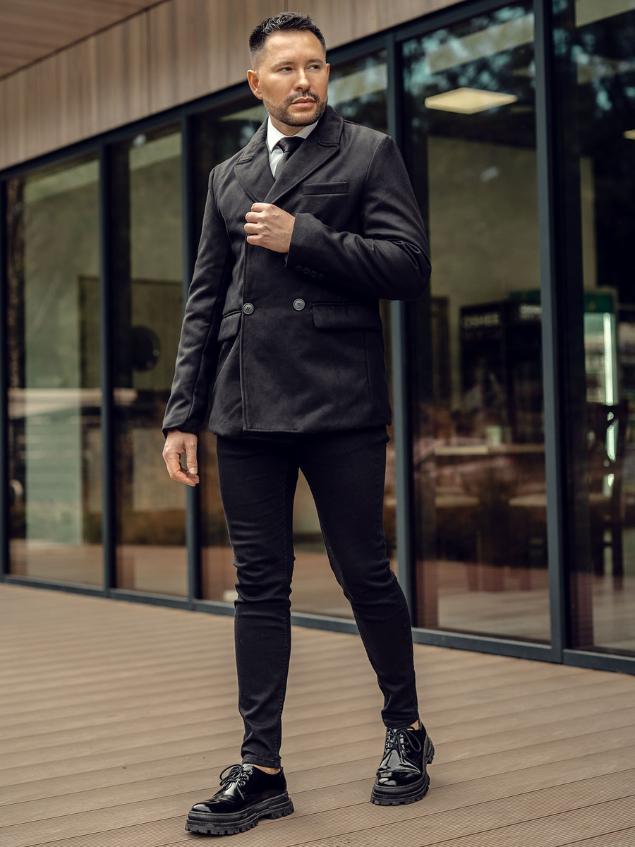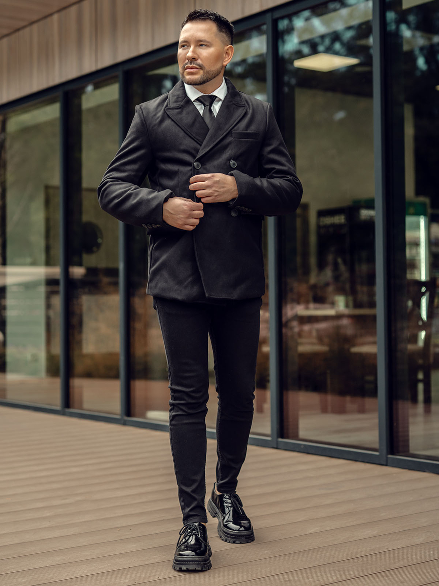 Paltonul de iarnă pentru bărbați scurt, negru, la două piept, Bolf 79B3A se va potrivi perfect în garderoba unui bărbat elegant și la modă. Aceasta este o haină clasică, la două piept, prinsă cu nasturi. Are guler inversat și căptușeală izolată. Caracteristicile sale practice sunt sporite de două buzunare exterioare acoperite cu clape, un buzunar la piept și un buzunar interior. Paltonul a fost confecționat din material de calitate inaltă. Este original și foarte elegant. Arata grozav atat nasturi cat si descheiat. Se va potrivi perfect cu pantaloni chino și cămașă ca un stil mai formal. Combinându-l cu blugi și cu gât țesut, vei obține un stil pentru ieșirile de zi cu zi.