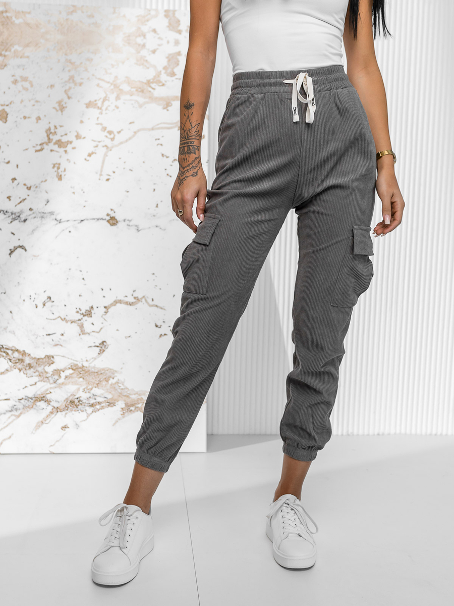 Opiniile utilizatorilor despre Pantaloni de jogging cargo de damă cu nervuri gri de la Bolf W7860