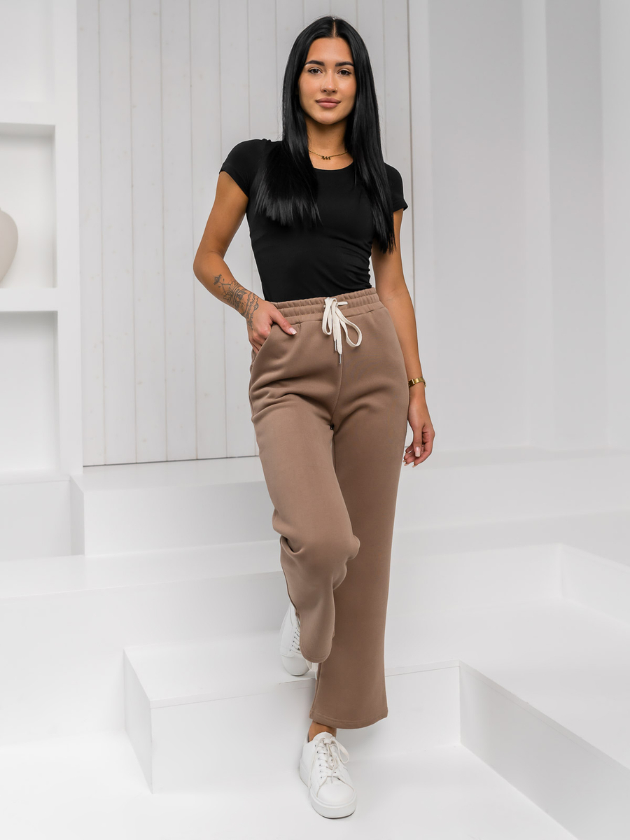 Pantaloni de trening maro pentru femei cu picioare largi de la Bolf W5213
