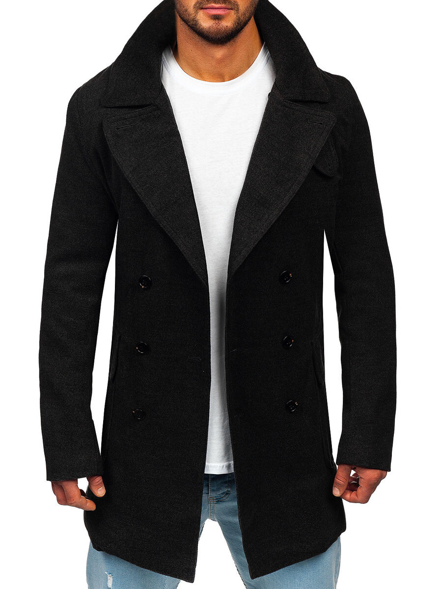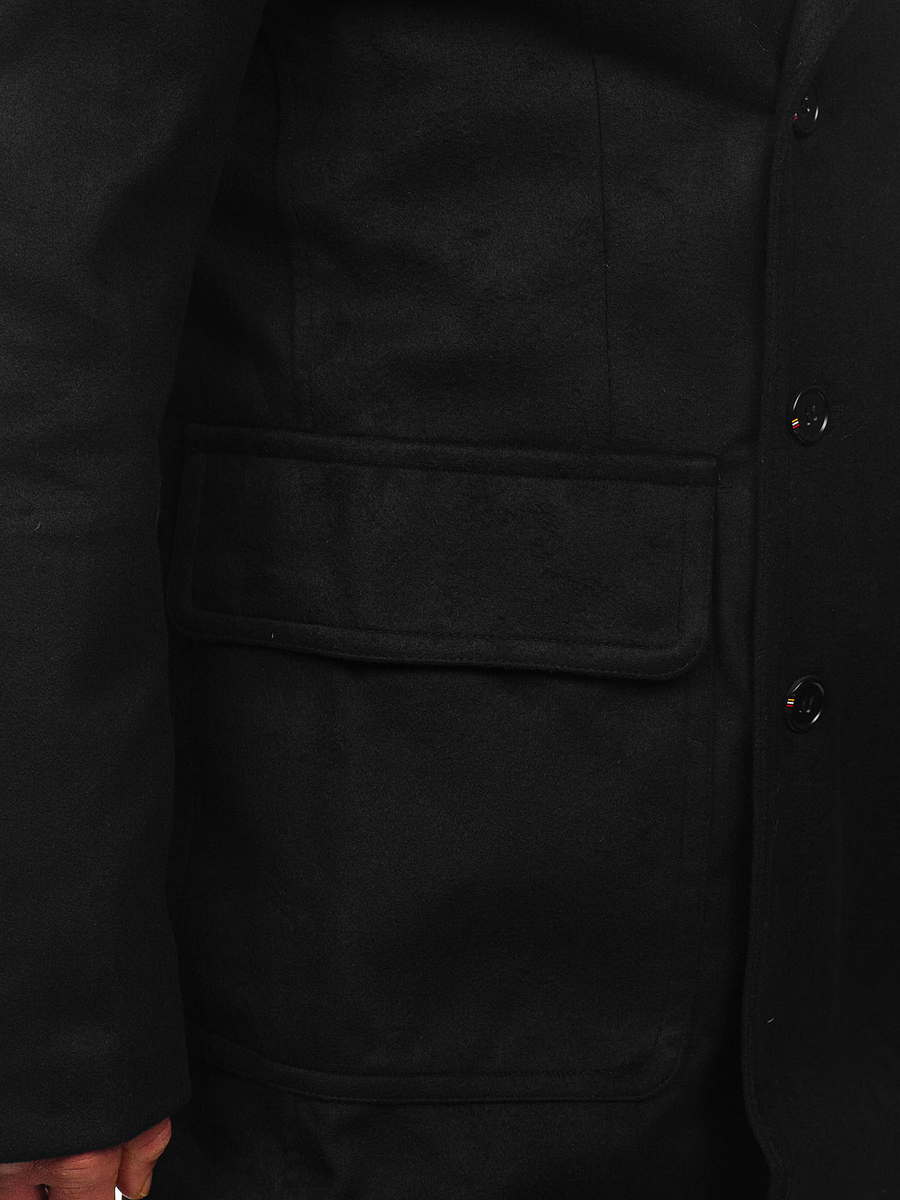 Paltonul negru de iarnă pentru bărbați Bolf 1048A este confecționat din material izolant, perfect pentru iarnă. Se închide cu nasturi este elegant și comod. Are două buzunare exterioare cu închidere la nasturi și un buzunar interior cu nasture. Paltonul se așează excelent pe silueta barbatului. Are guler tip revers și închidere la gât Produsul negru va funcționa perfect atât în stiluri de culoare mai discrete, cât și mai îndrăznețe.
