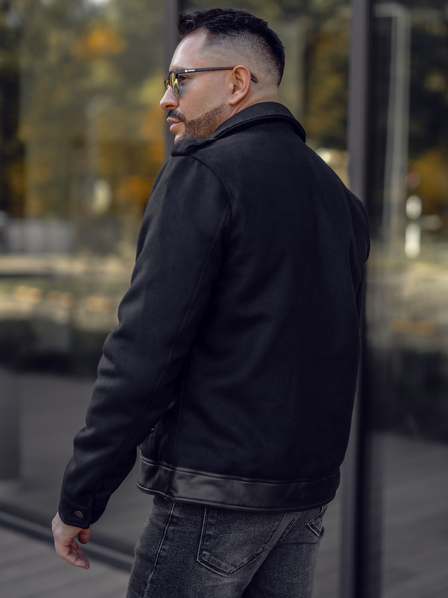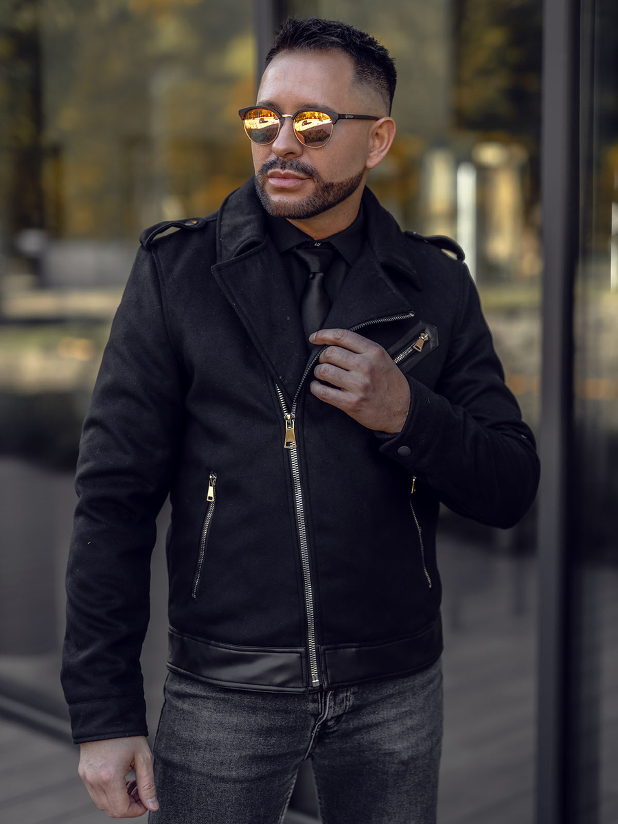 Jacheta neagră de motociclist de iarnă pentru bărbați 79M15501A are o croială clasică, dreaptă. Are inchidere cu fermoar strălucitor, guler tip revers. Epoleti la umeri conferă caracter. Are trei buzunare cu inchidere și unul interior fără inchidere. Mânecile reglabile cu nasturi și finisare se potrivește excelent pe silueta. Stilul casual permite să combini in diverse ținute interesante Se va potrivi excelent în zilele reci. La întâlnire cu prietenii combină cubluză sau blugi. Combină produsul cu pulover ori pantaloni joggers,vei obține un look minunat.