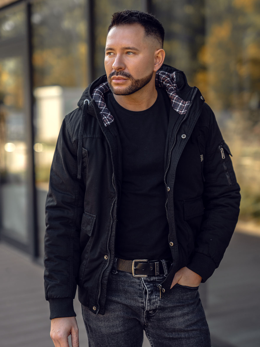 Geaca de iarna neagra pentru barbati Bolf 1890A2 este unul dintre cele mai dorite articole din sezonul toamna-iarna. Este călduroasă cu inchidere la fermoar și nasturi. Are glugă reglabilă conectată cu gulerul, carourile conferă caracter. Geaca se potriveste în ținutele sport și zilnice sau ținutele smart casual. Este netedă de culoare neagră Are guler practic care protejează de frig și vânt. Geaca are multe buzunare practice. La finisare buzunare exterioare tip cargo cu inchidere la nasturi și două buzunare laterale Are două buzunare la piept cu inchidere la nasturi și un buzunar interior cu fermoar. Mânecile și finisare gecii cu elastic. Geaca se înscrie în trendurile actuale ale modei. Este confecționată din materila gros de inaltă calitate, te va proteja de vânt și frig in zilele reci. Completează excelent look-ul zilnic, se potrivesc minunat pentru timpul rece .