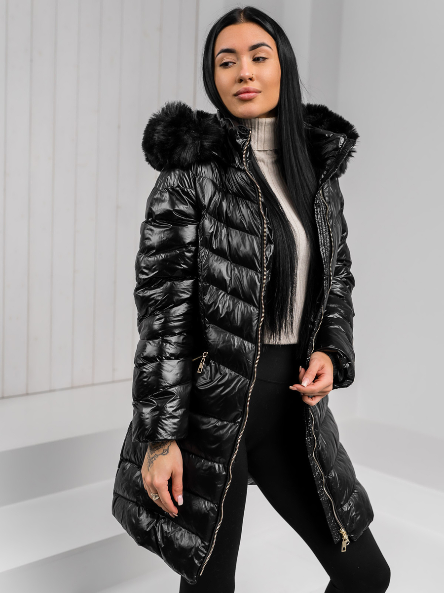 Opiniile utilizatorilor despre Jachetă neagră lungă matlasată, haină de iarnă pentru femei cu glugă, Bolf 5M3162A1