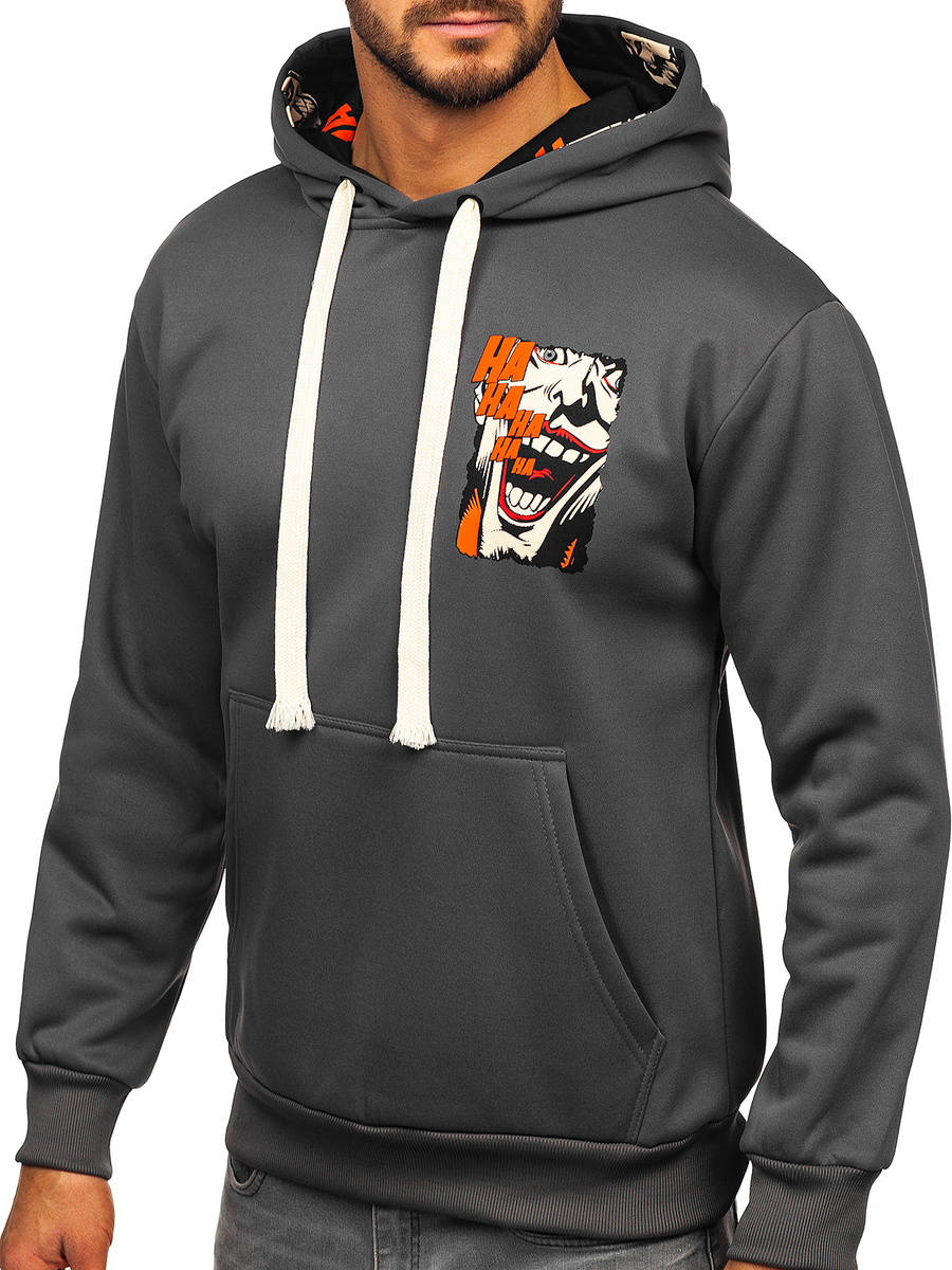 Opiniile utilizatorilor despre Hanorac tip cangur pentru bărbați din grafit cu imprimeu Bolf M286