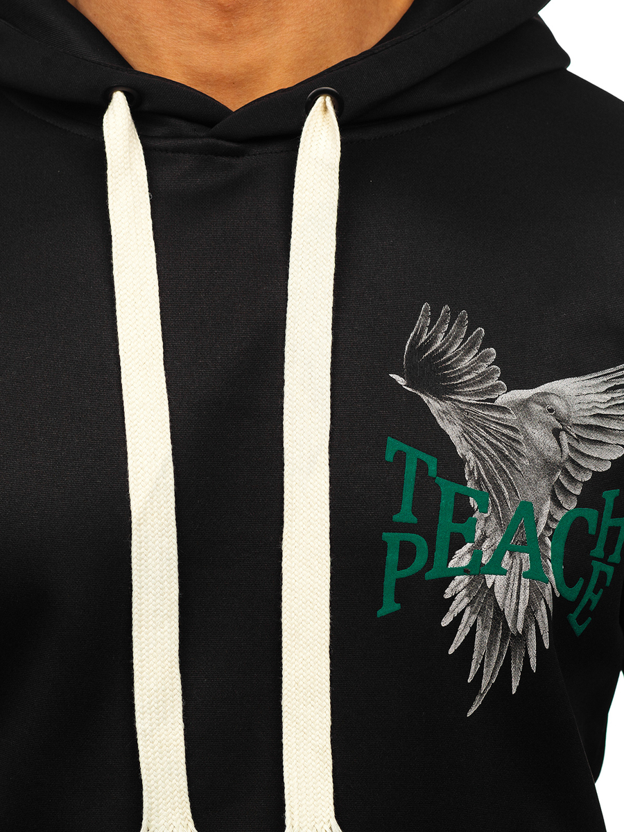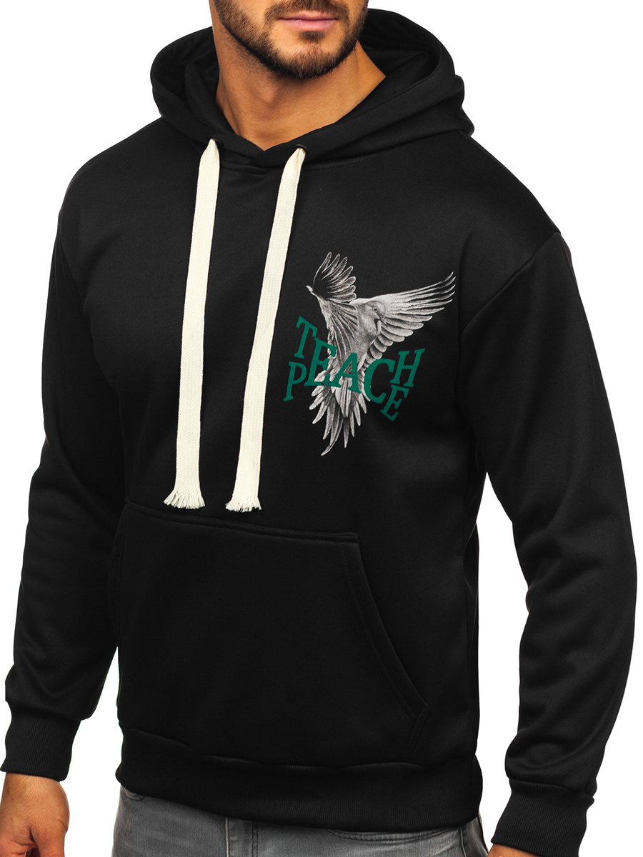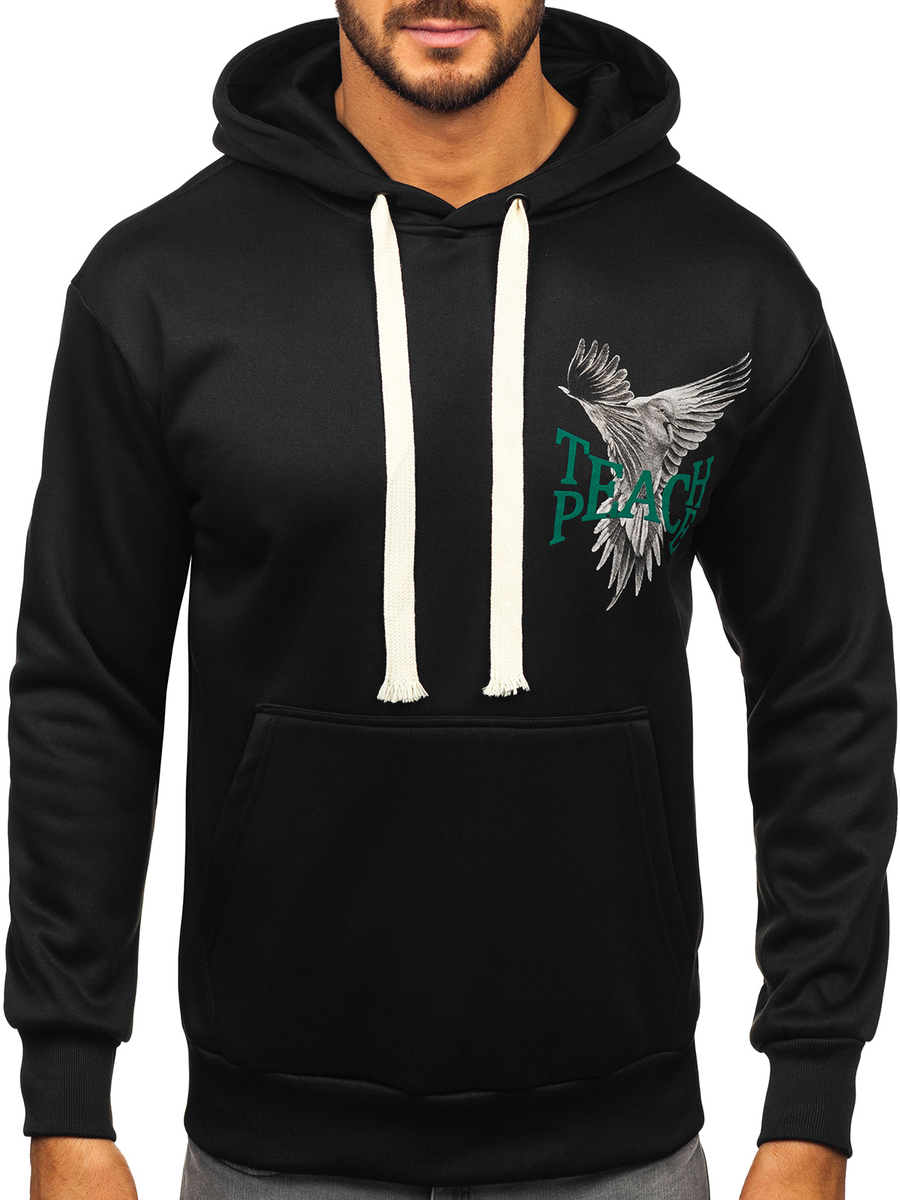 Opiniile utilizatorilor despre Hanorac negru tip cangur pentru bărbați cu imprimeu Bolf M279