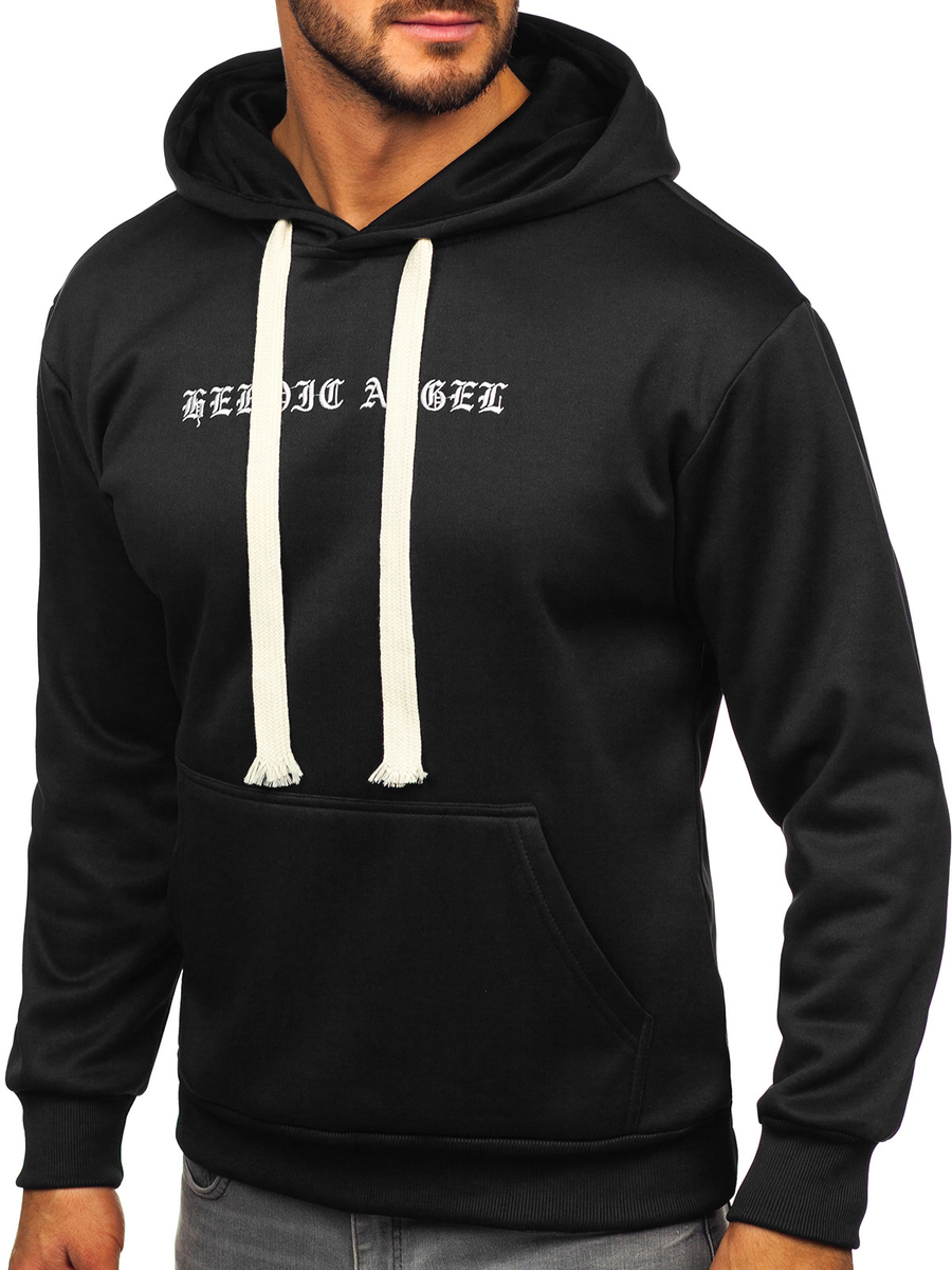 Opiniile utilizatorilor despre Hanorac negru tip cangur pentru bărbați cu imprimeu Bolf M276