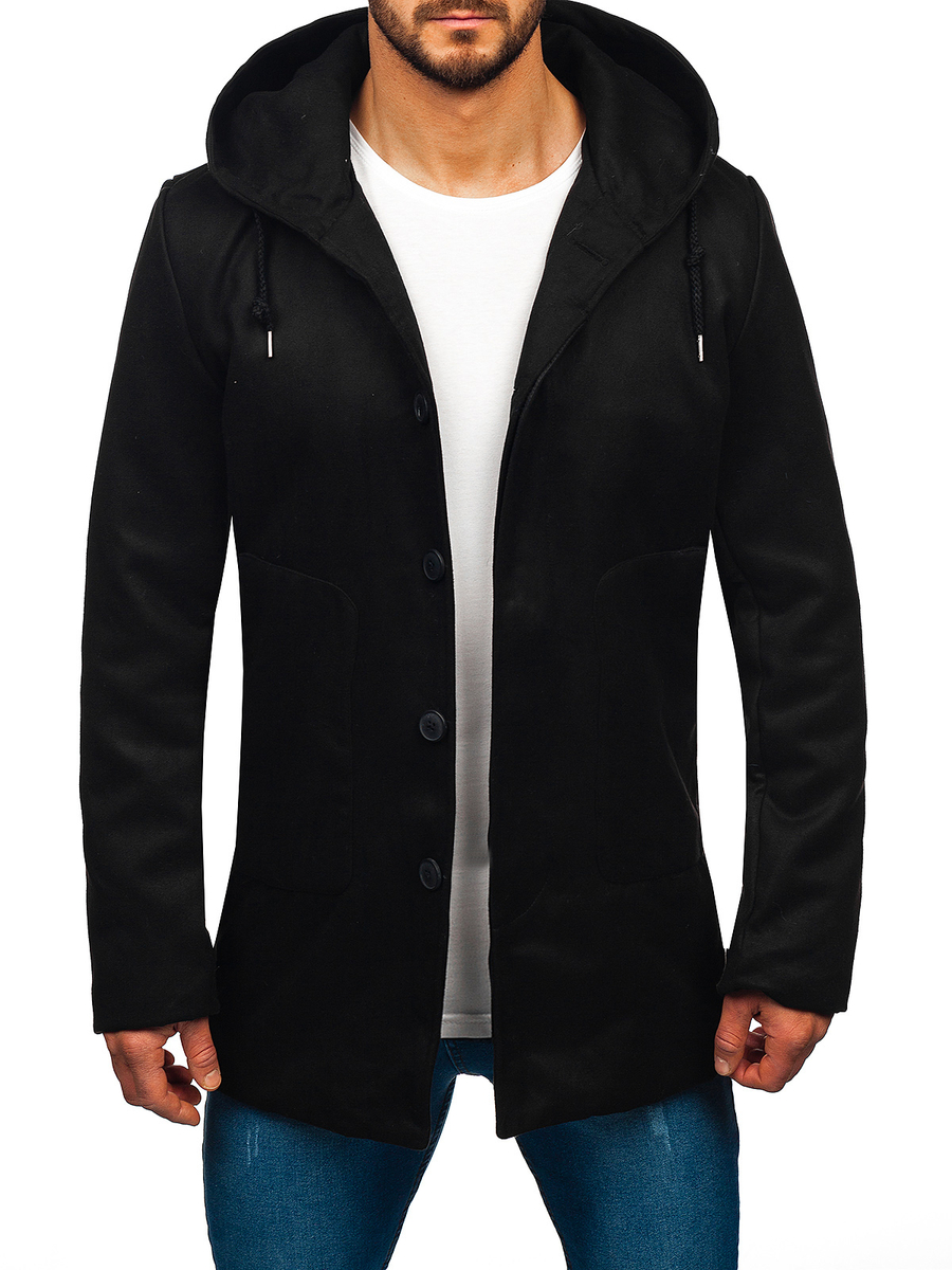 Paltonul negru de iarnă pentru bărbați cu glugă Bolf 79B3A1-197 este o haină universală care se va potrivi perfect în garderoba unui bărbat elegant și la modă. Palton clasic cu inchidere la nasturi. Gluga reglabilă conferă caracter. Are două buzunare exterioare și unul interior. Paltonul se prezintă excelent inchis sau deschis. Confecționat din material de inaltă calitate. Este original și foarte elegant. Se prezintă excelent în combinare cu pantaloni chinos, cămașă si sacou, ca ținută formală. Combină cu blugi si pulover, vei obține o ținută pentru ieșirile zilnice.