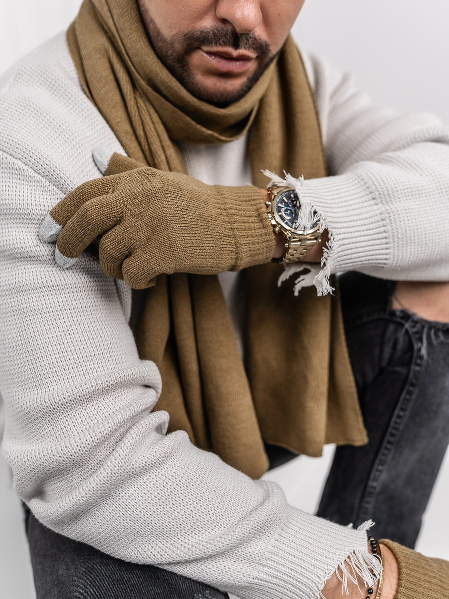 Opiniile utilizatorilor despre Set de iarnă maro pentru bărbați - pălărie, eșarfă, mănuși Bolf 2025007