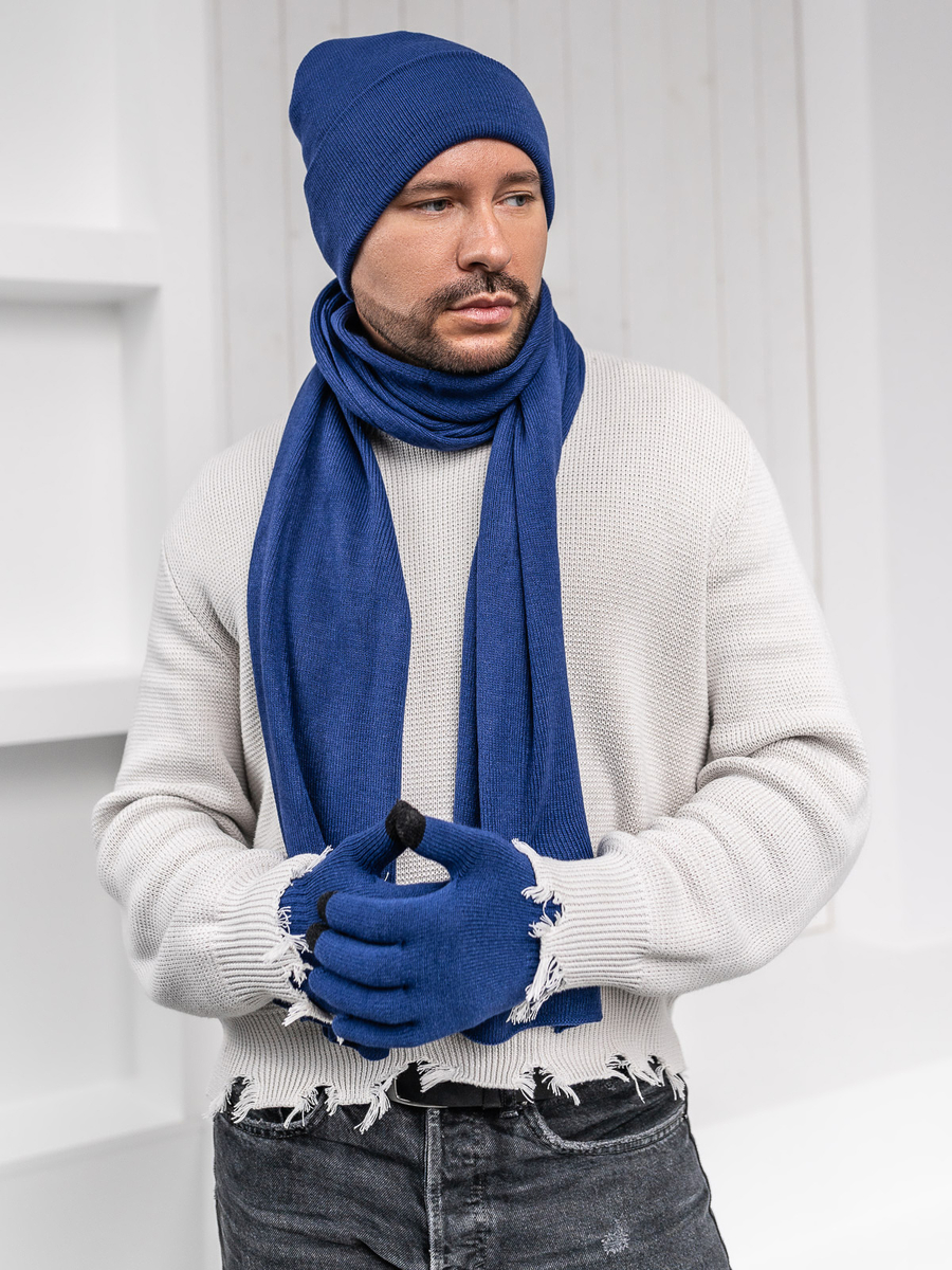 Opiniile utilizatorilor despre Set de iarnă pentru bărbați albastru cobalt - pălărie, eșarfă, mănuși Bolf 2025007