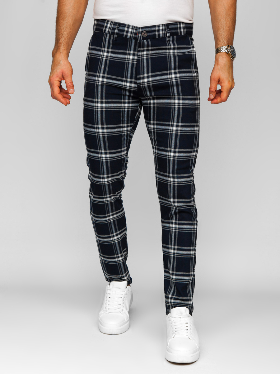 Opiniile utilizatorilor despre Pantaloni formali pentru bărbați bleumarin cu model în carouri Bolf 184144