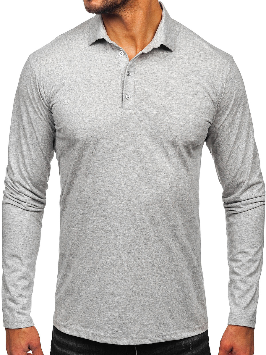 Opiniile utilizatorilor despre Tricou polo cu mânecă lungă din bumbac gri pentru bărbați Bonley 5119