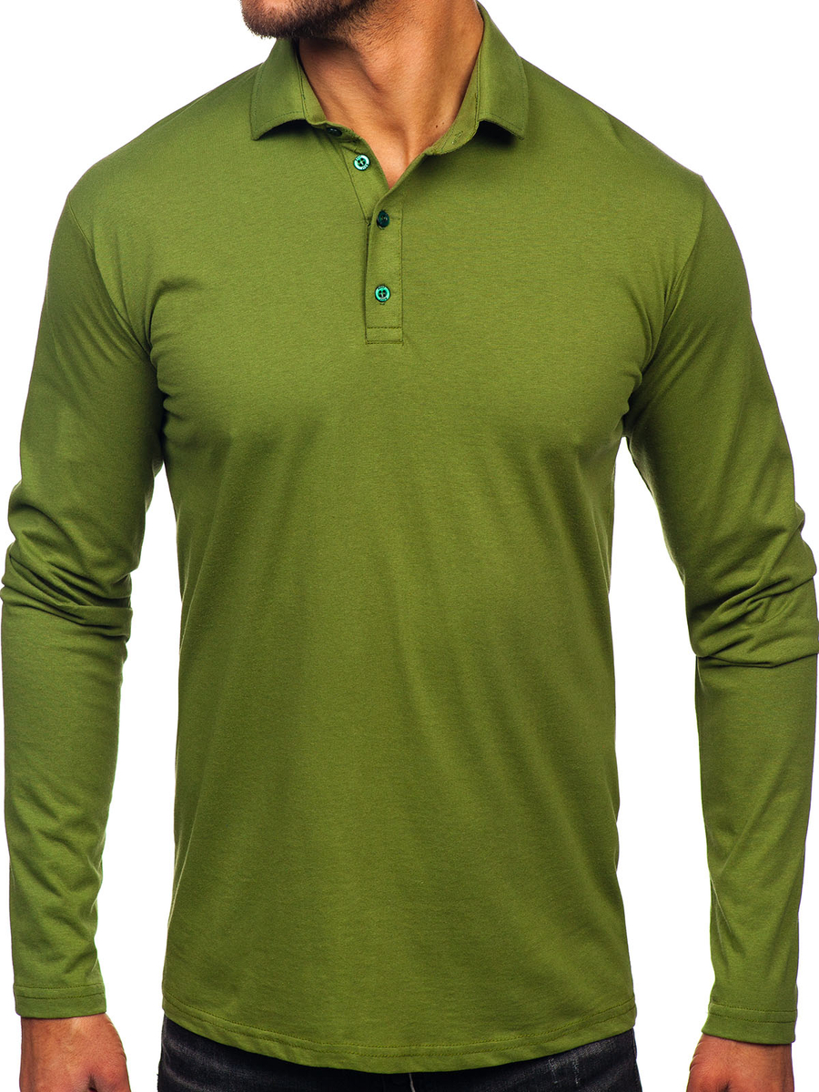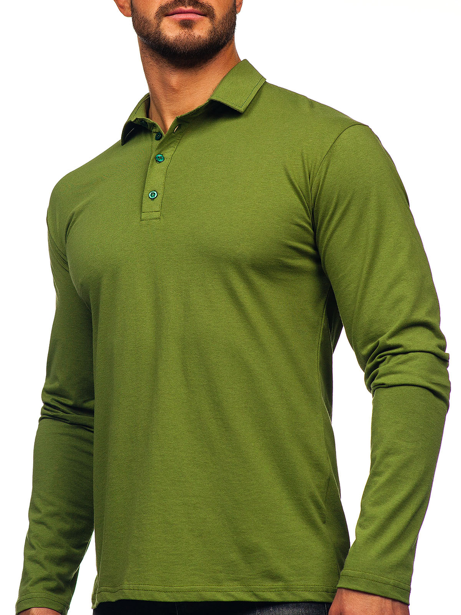 Opiniile utilizatorilor despre Tricou polo cu mânecă lungă din bumbac verde pentru bărbați Bonley 5119