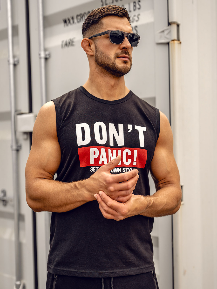 Topul cu imprimeu negru Bolf 14827A este o alegere perfectă pentru bărbații care caută îmbrăcăminte elegantă, dar confortabilă. Fabricat din materiale de înaltă calitate, oferă nu numai confort excelent la purtare, ci și durabilitate. Cu siguranță va dura multe sezoane. Tricoul subliniază perfect silueta, iar imprimeul din față adaugă un caracter la modă. Funcționează bine pentru stilul de zi cu zi, casual și sportiv. Asociați-l cu joggeri sau pantaloni scurți.