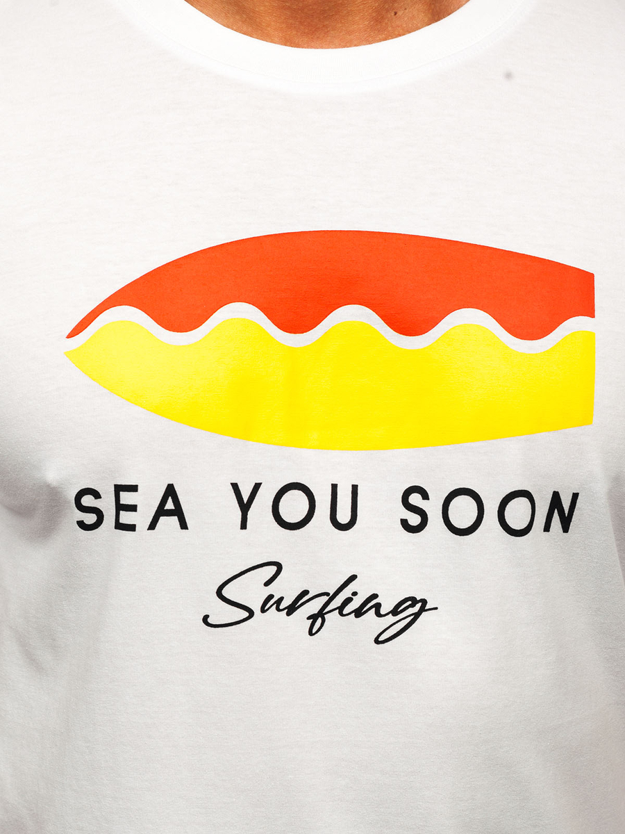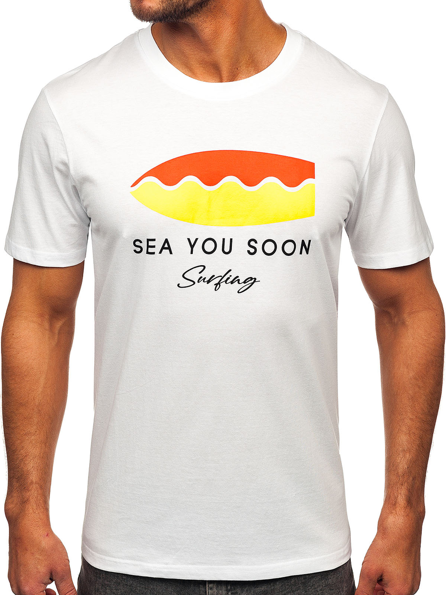Opiniile utilizatorilor despre Tricou bărbătesc din bumbac alb cu imprimeu Bolf MPO3457