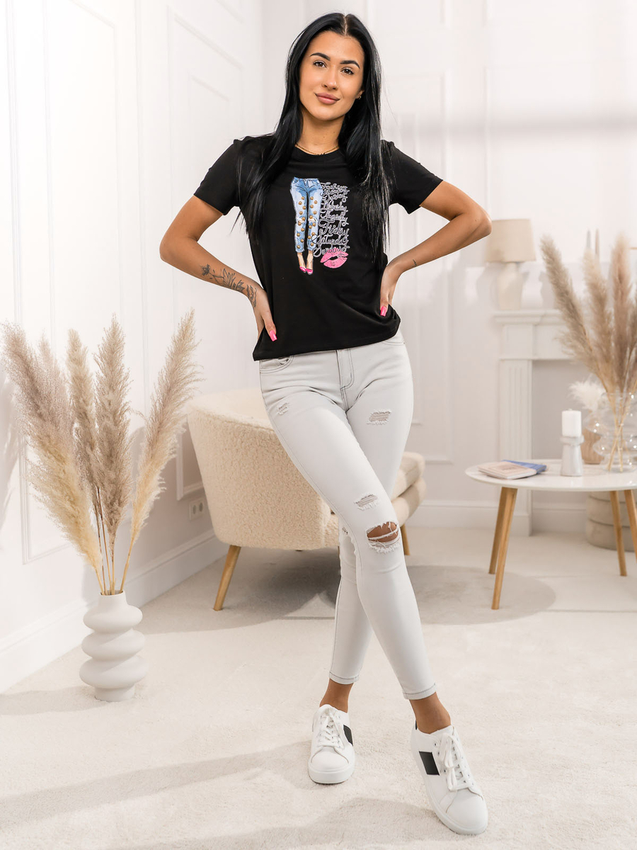 Opiniile utilizatorilor despre Tricou negru de dama cu imprimeu Bolf 95T2507