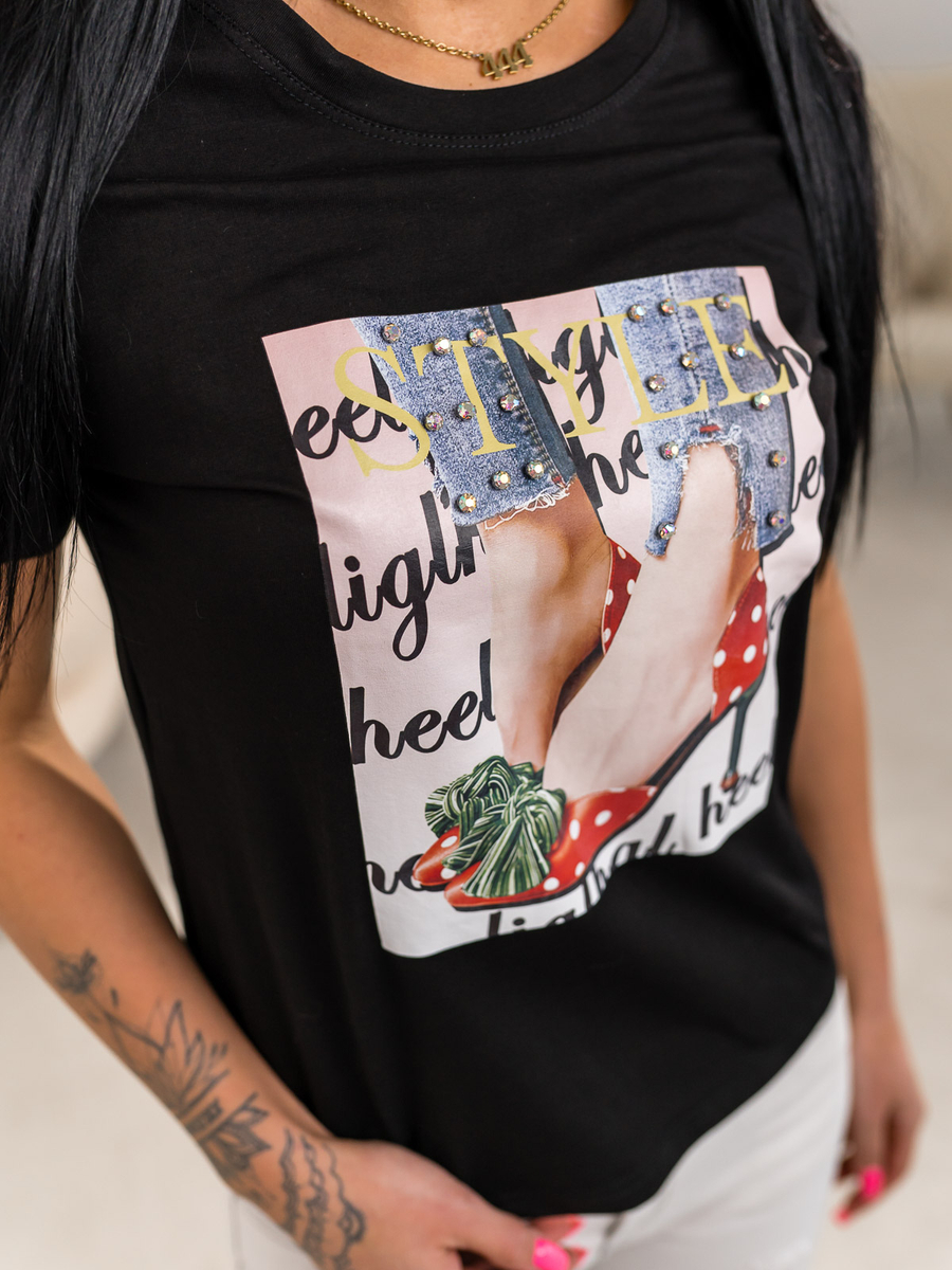 Opiniile utilizatorilor despre Tricou negru de dama cu imprimeu Bolf 95T2506